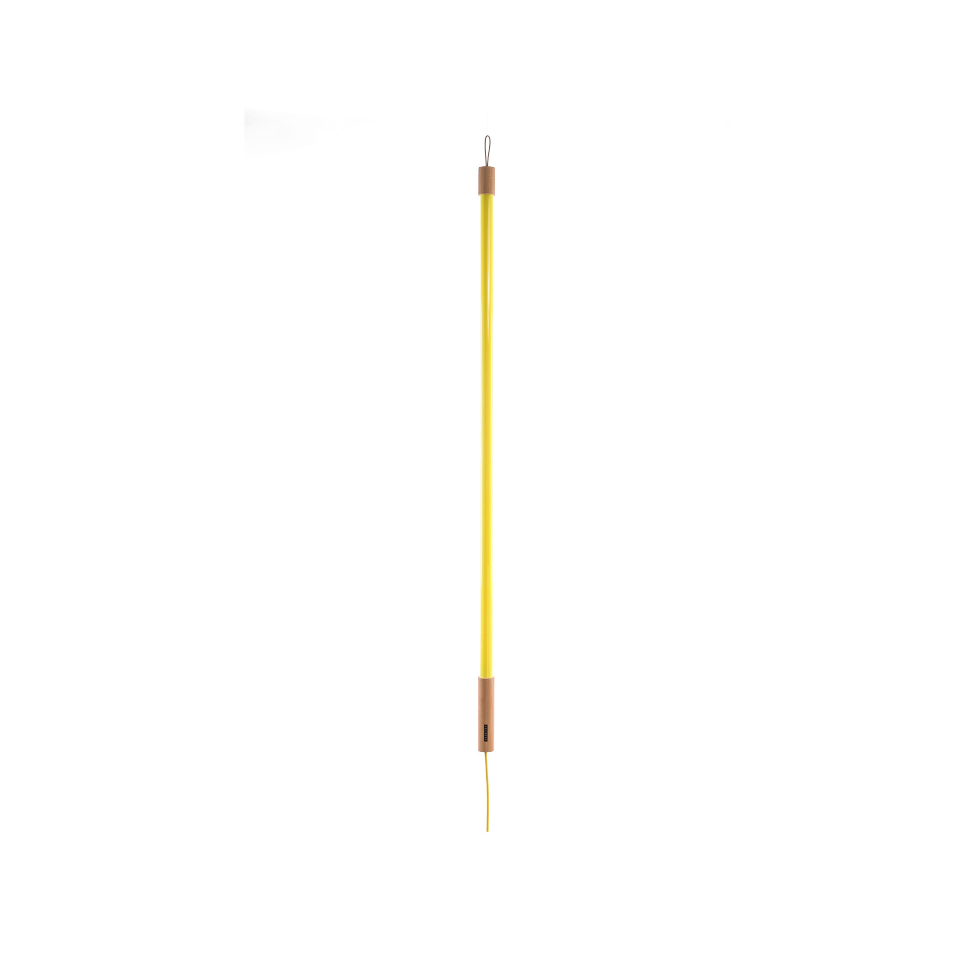 Designkollektivet Selab från Seletti, i samarbete med den erkända italienska designern Alessandro Zambelli, har framtagit en kollektion av avantgardistiska neonlysrör i ett spektrum av sex neonnyanser. Denna specifika modell lyser upp i en livlig gul ton och avger ett intensivt och färgstarkt sken. Tillverkad av en kombination av trä och plast, har denna lampa ett glasrör som ljuskälla och är utrustad med en koordinerad textilsladd som inkluderar en strömbrytare. Tack vare Lineas innovativa design kan den användas på mångsidiga sätt, som en vägg- eller takbelysning, och kan även omvandlas till en distinkt stående golvlampa med en separat träfot.
