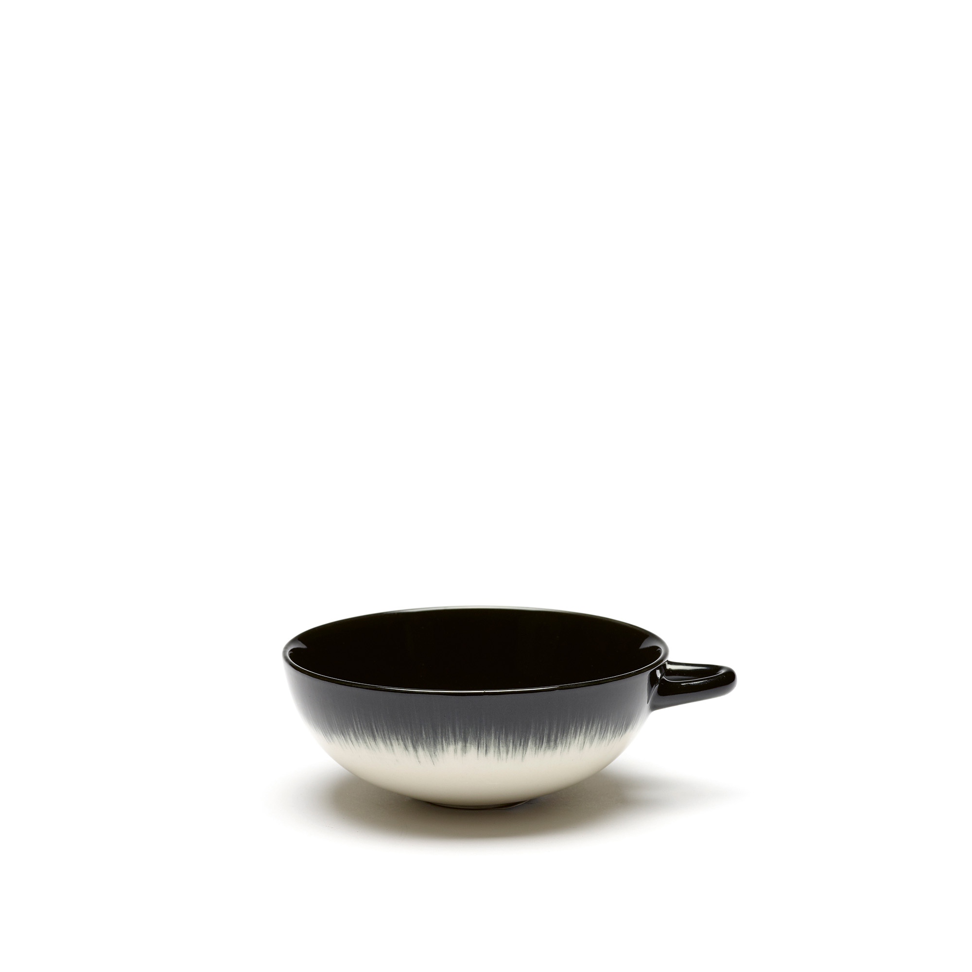 Cup Dé White/Black Var B från Serax är formgiven av den kända designern Ann Demeulemeester för Serax. Den här generösa koppen rymmer 20 cl och har en unik skålform med ett horisontellt placerat öra. Koppen kan användas i mikrovågsugn och är diskmaskinssäker. Ann Demeulemeester är en belgisk modedesigner som lämnade modebranschen för att delta i porslinsmästarkurser i England och Frankrike. I samarbete med Serax har hon skapat en tidlös och prisvärd kollektion av serviser i handmålat porslin, silverbestick och glas.