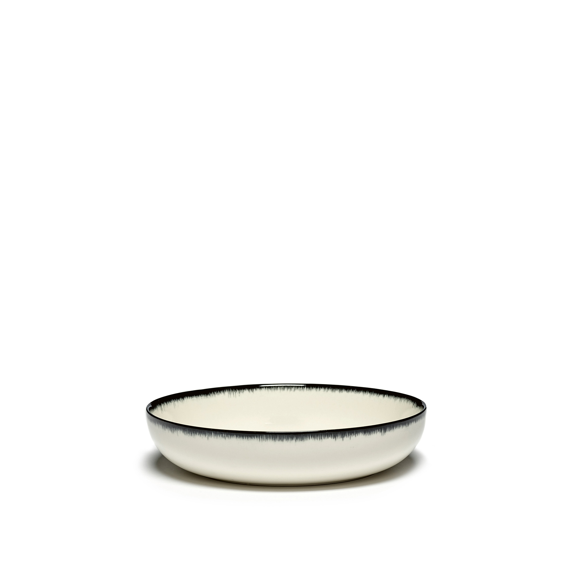 High Plate Dé White/Black Var A är en handmålad tallrik i porslin med det tidlösa chiaroscuro-spelet av ljus och skugga. Tallriken kan både användas som en djup tallrik eller en skål. Den här tallriken ingår i en kollektion av Ann Demeulermeester och har en kombination av vita och svarta färger, vilket ger den ett modernt och tidlöst utseende. Tallriken kan användas i mikrovågsugn och är diskmaskinssäker. Ann Demeulemeester är en belgisk modedesigner som lämnade modebranschen för att delta i porslinsmästarkurser i England och Frankrike. I samarbete med Serax har hon skapat en tidlös och prisvärd kollektion av serviser i handmålat porslin, silverbestick och glas. High Plate Dé White/Black Var A finns i flera olika storlekar.