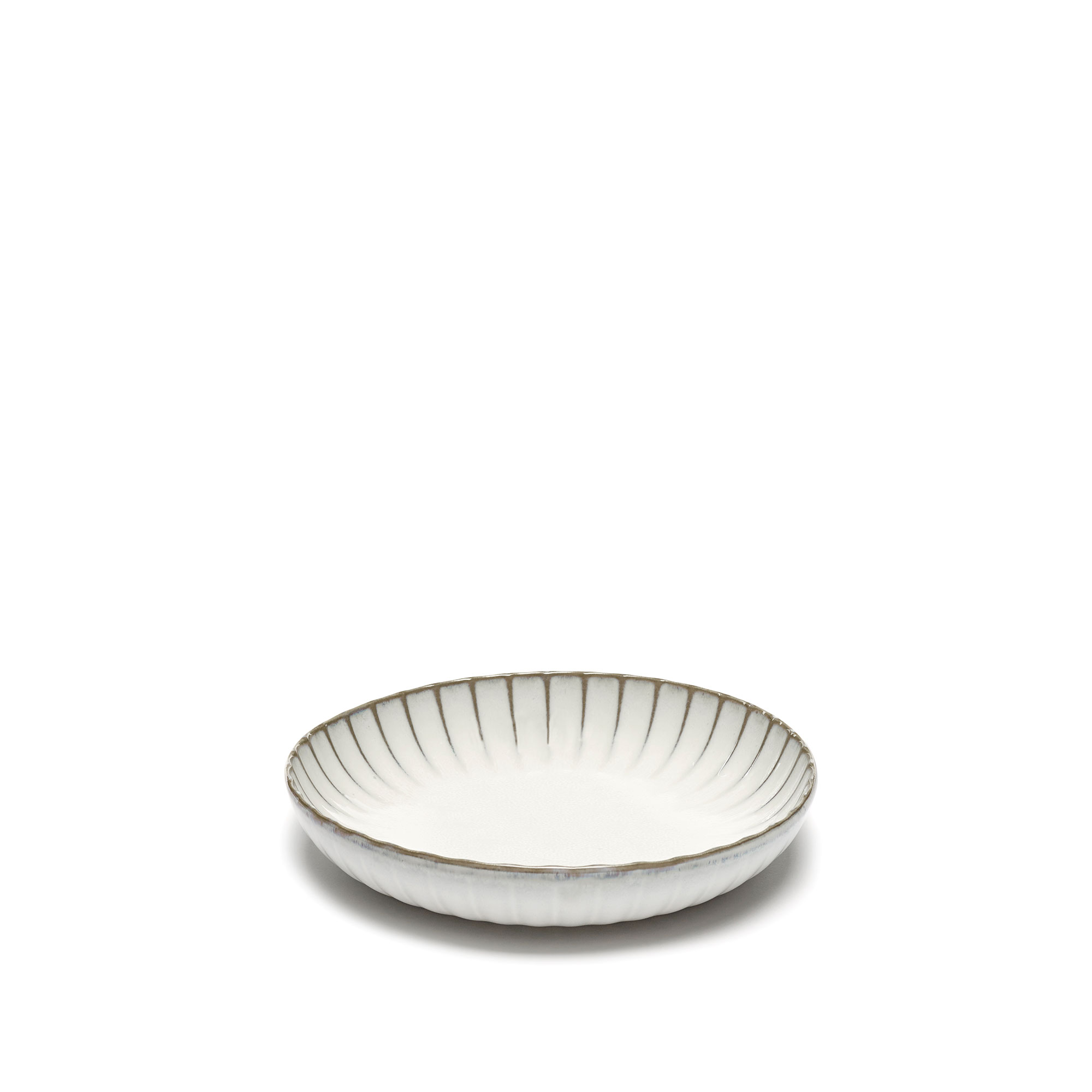 Inku High Plate – White är ett fat med hög kant från Serax, formgiven av Sergio Herman. Den här höga tallriken är tillverkad av stengods och har en glaserad yta, vilket gör den idealisk för att servera pasta, sallad eller soppa i. Den dekorativa kanten har en mjuk textur som påminner om blomblad. Inspirationen till dess design kommer från den japanska kulturen och den ofullkomliga perfektion som finns i naturens vackra strukturer.