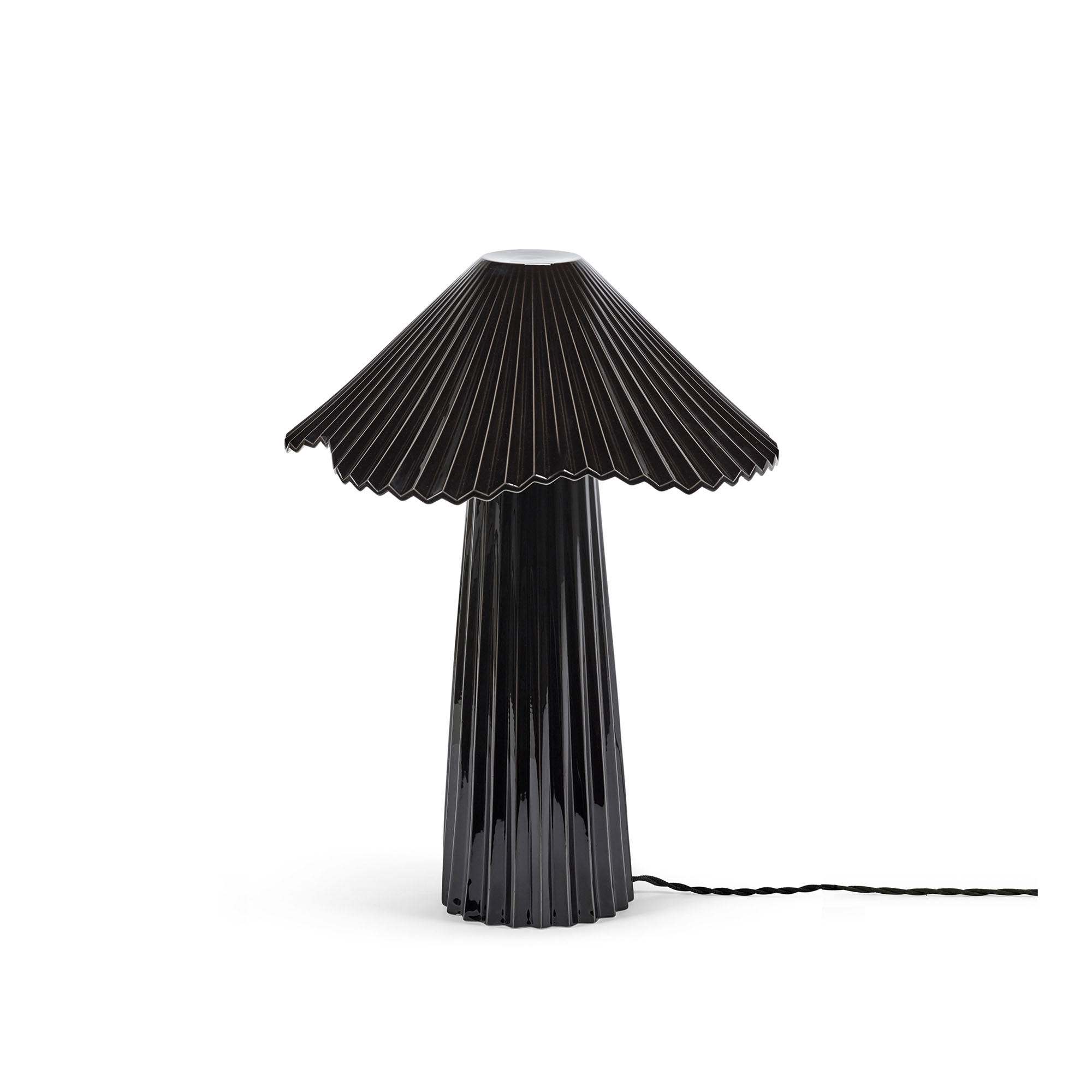 Uala bordslampa L är en lampa från det belgiska varumärket Serax. Produkten är designad av Sebastian Herkner och inspirerad av de veckade bladen på Licuala Grandis, även kallad Ruffled Palm. Lampskärmen är tillverkad i porslin och formad för hand med en mjukt böljande yta som antyder rörelse. Den större storleken gör lampan lämplig som belysning på bord eller skänk. Produkten är avsedd för inomhusbruk och levereras utan tillbehör.