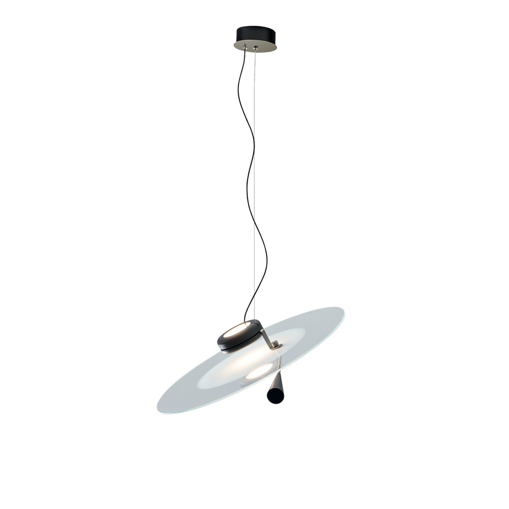 Bascula Suspension från Stilnovo är en taklampa inspirerad av rymdskeppet Enterprise från Star Trek och är designad av Shigeaki Asahara. Lampan består av en tunn skiva upphängd på en kabel. En konisk motvikt balanserar skivan och håller lampan i en horisontell eller lutande position samtidigt som den styr ljusutsändningen. Bascula Suspension är dimbar, har en glasspridare, värmeavledare i aluminium och en motvikt i metall. Denna design kombinerar funktionalitet med en unik estetisk stil, perfekt för moderna inredningar som värderar både design och innovation.