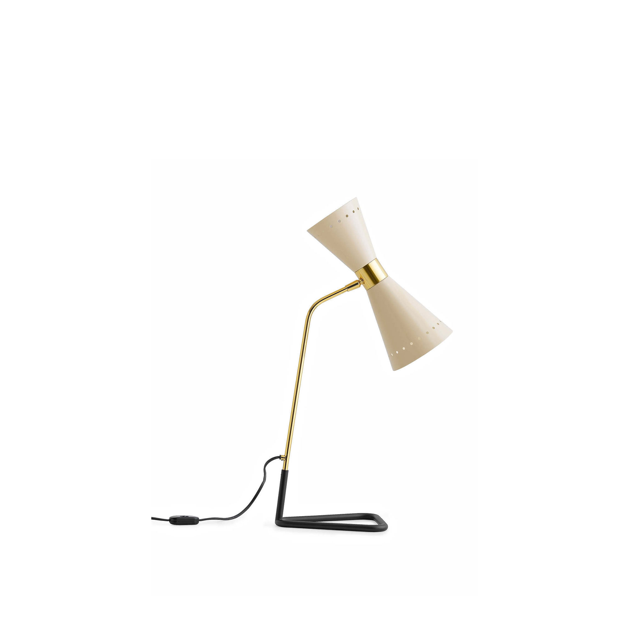 Megafono Table Lamp är en bordslampa från det italienska varumärket Stilnovo, formgivet år 1958. Megafono Table Lamp är en ikonisk lampa som har utformats med elegans i åtanke. Lampans kropp är tillverkad av polerad mässing och skärmarna är av konisk metall. Som namnet antyder är designen inspirerade av en megafon. Denna vägglampa har en stilfull skärm och är utrustad med två glödlampor, vilket avger både direkt och indirekt belysning.