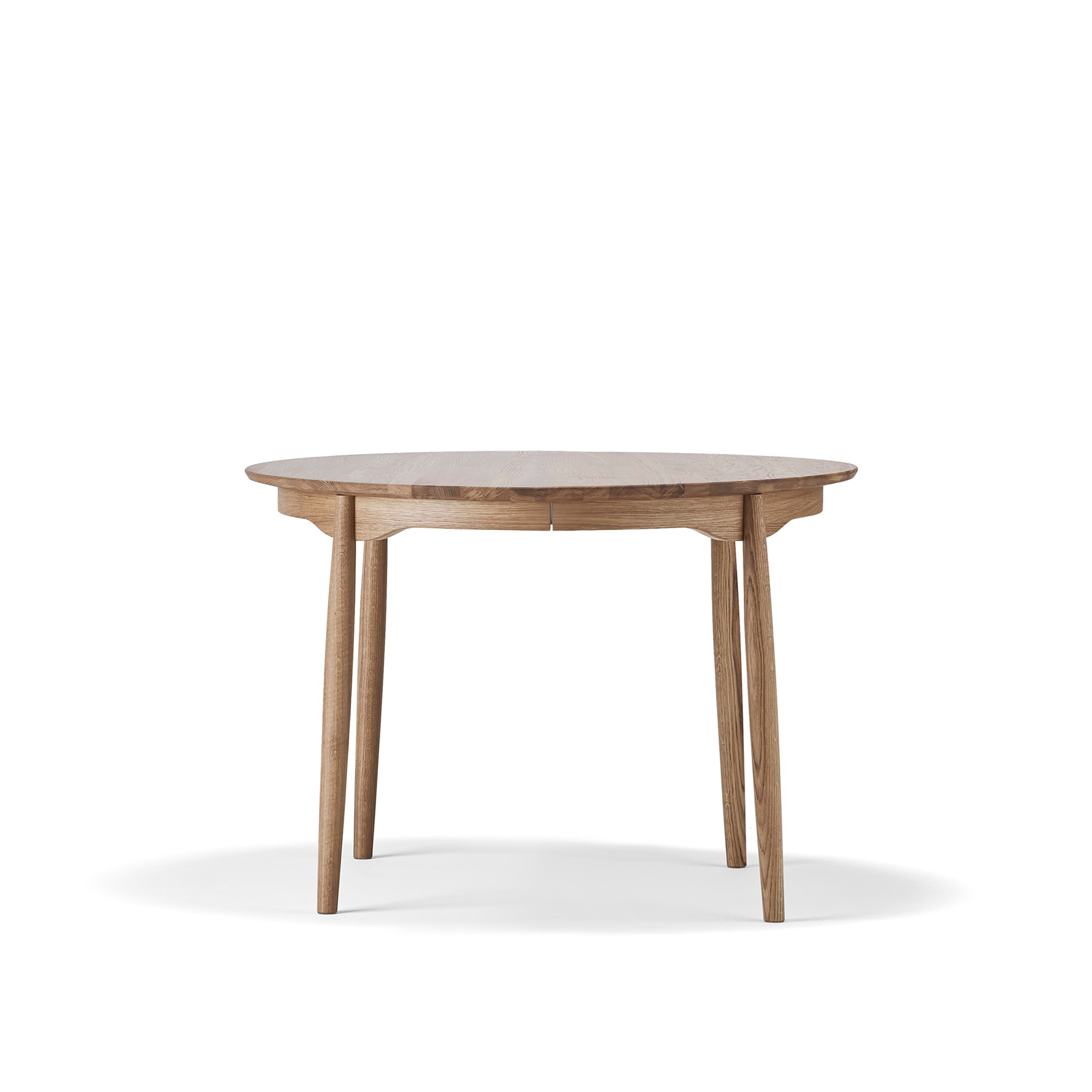 Carl matbord Ø115 cm delbart utan iläggsskiva är ett klassiskt matbord från svenska Stolab. Bordet är formgivet av Marit Stigsdotter som en tolkning av Carl Malmstens formspråk och med inspiration från stolen Lilla Åland. Den moderna designen förenar traditionellt hantverk med ett samtida uttryck där rundade former och mjuka linjer samspelar med praktisk funktion.