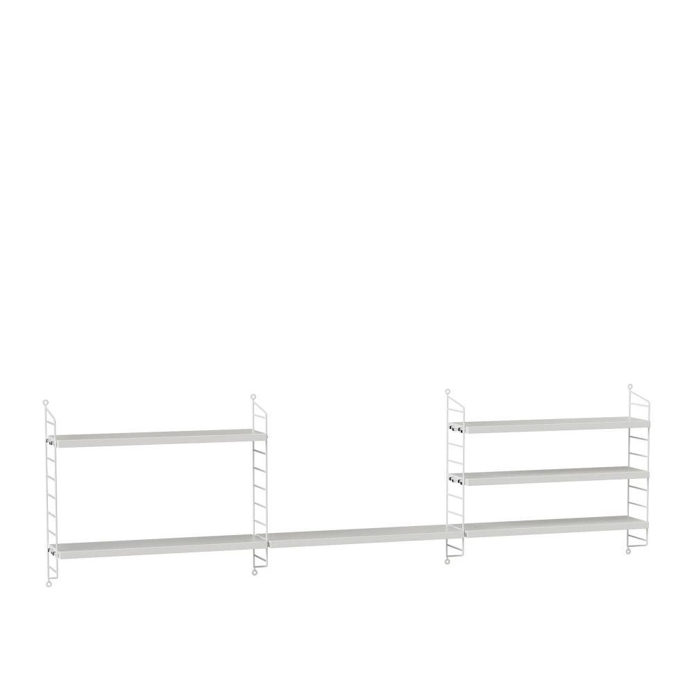 Denna väggmonterade uppsättning Barnrumspaket H består av tre delar och erbjuder oändliga möjligheter för kreativitet. Perfekt för att arrangera familjebilder, dopgåvor eller kanske de smås älsklingsböcker. String har med Barnrumspaketet lagt extra vikt vid flexibel förvaring och genomtänkta lösningar som passar de skiftande förvaringsbehoven i ett barns rum.