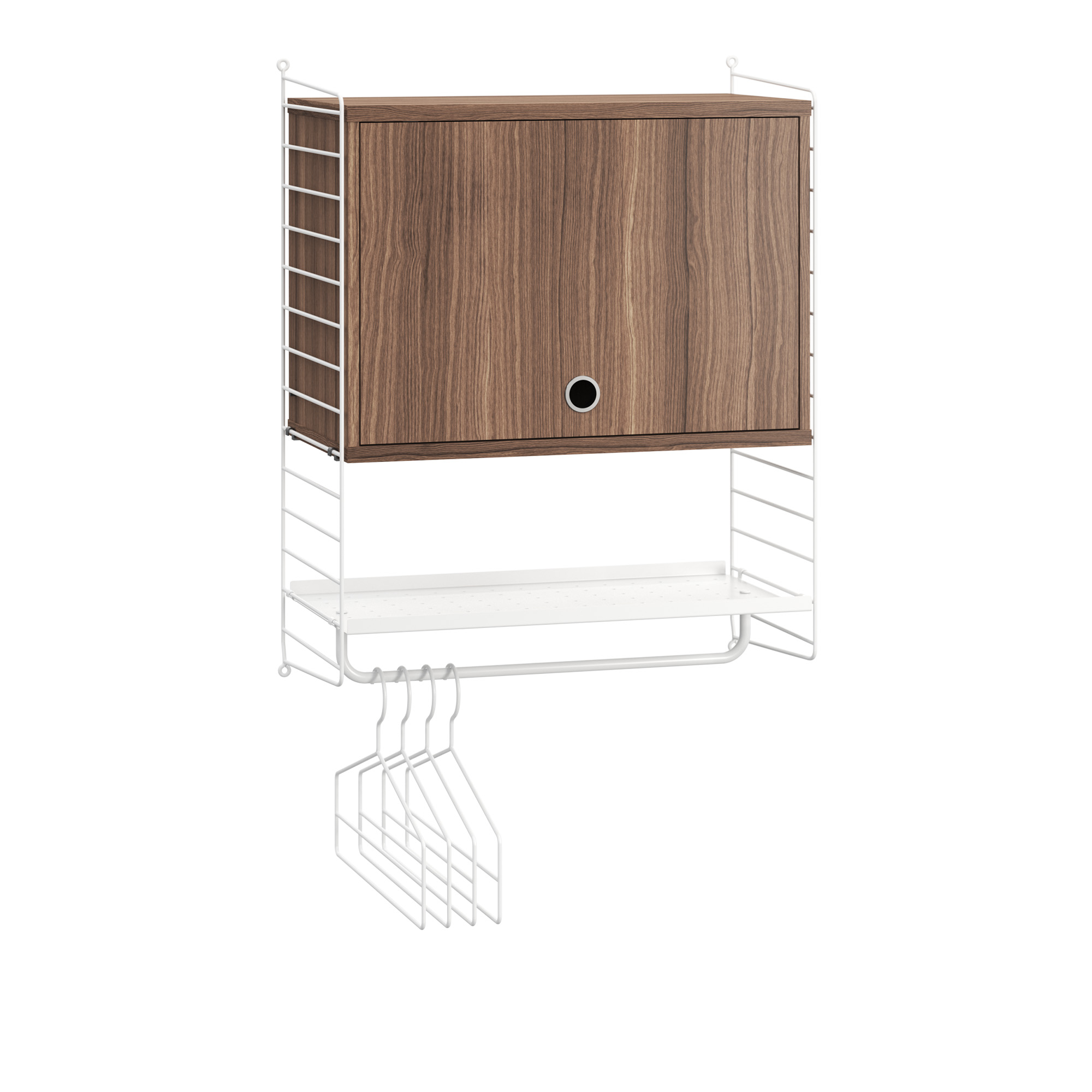 String Hallkombination är en vägghängd förvaringslösning från det svenska varumärket String Furniture. Designen är skapad inom String System av Nisse Strinning år 1949. Kombinationen består av två vägggavlar, en stång, ett metallhyllplan med låg kant, fyra galgar och ett överskåp. Konstruktionen är anpassad för hallmiljö och ger möjlighet att organisera jackor, väskor, mössor och vantar. Förvaringslösningen monteras på vägg och lämpar sig för entréer och mindre utrymmen. Alla delar ingår i leveransen.