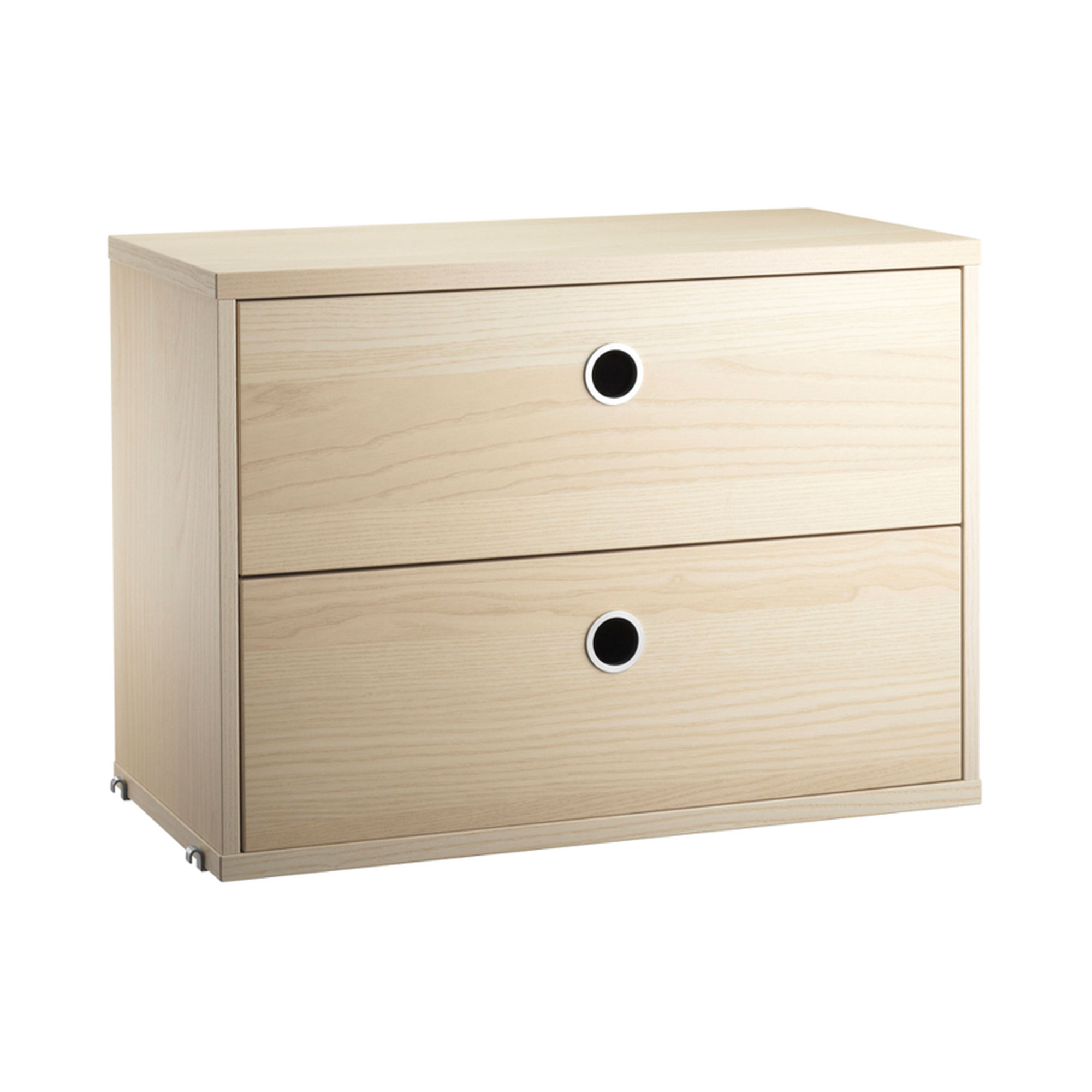 Lådhurtsarna passar med samtliga tråd- och plexgavlar från String System förutsatt att gavlarna har 30 cm djup. De är designade med två utdragbara lådor vilket gör de optimala för dold förvaring. Lådhurtsarna passar såväl i hallen som i vardagsrummet eller barnrummet. Lådhurtsarna levereras omonterade.