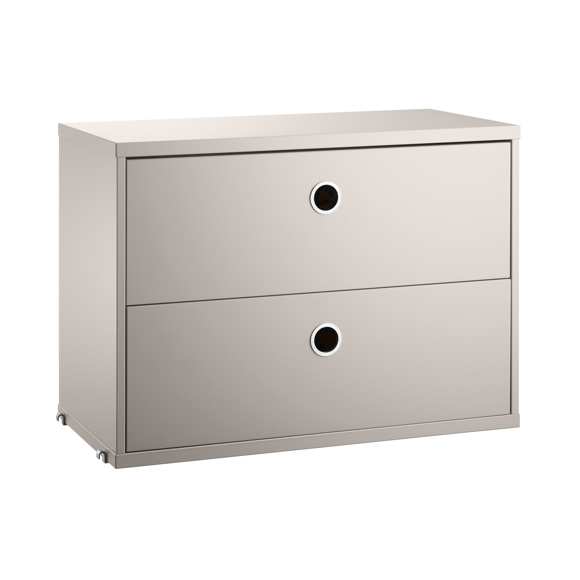 Lådhurtsarna passar med samtliga tråd- och plexgavlar från String System förutsatt att gavlarna har 30 cm djup. De är designade med två utdragbara lådor vilket gör de optimala för dold förvaring. Lådhurtsarna passar såväl i hallen som i vardagsrummet eller barnrummet. Lådhurtsarna levereras omonterade.