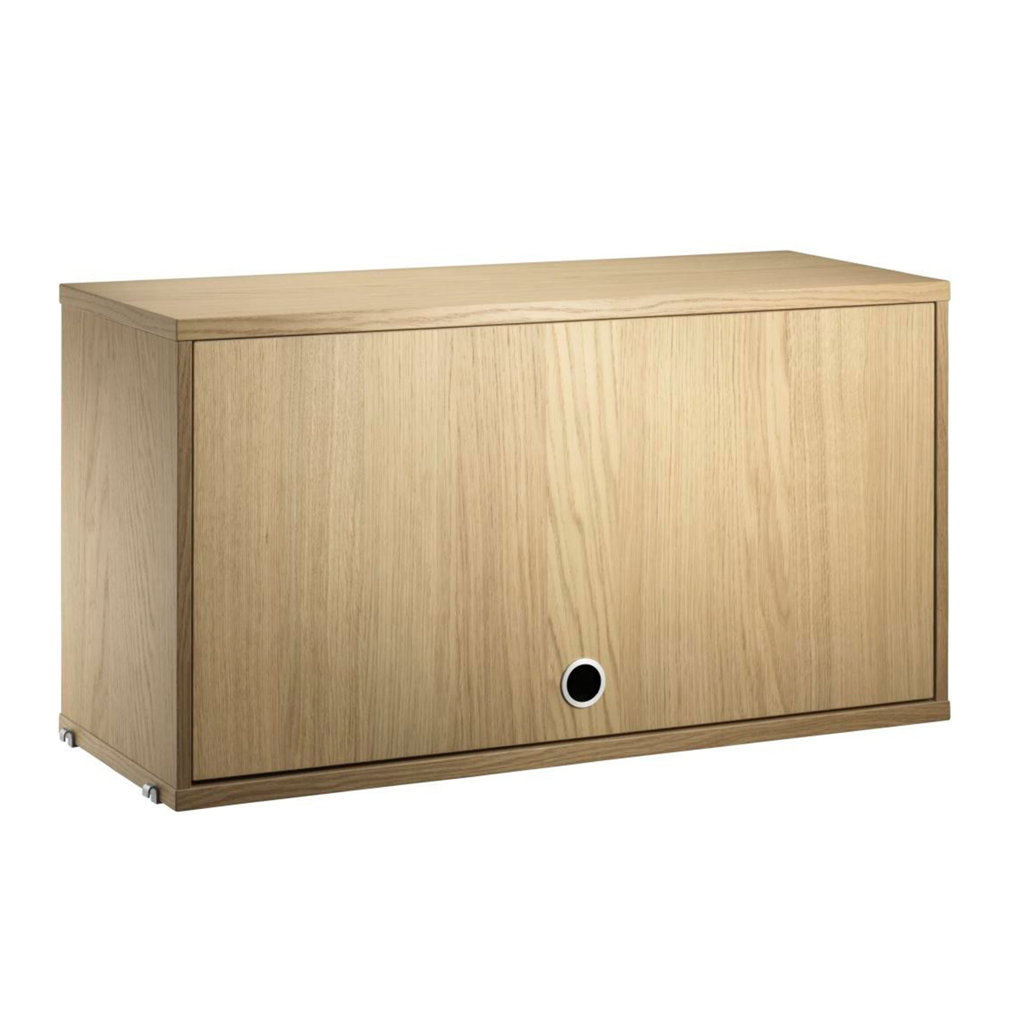 Strings överskåp med lucka som öppnas uppåt är en del av det klassiska hyllsystemet från String, formgiven av Nisse Strinning. Skåpet är kompatibel till gavlar med 30 centimeters djup och finns i flera olika utföranden.