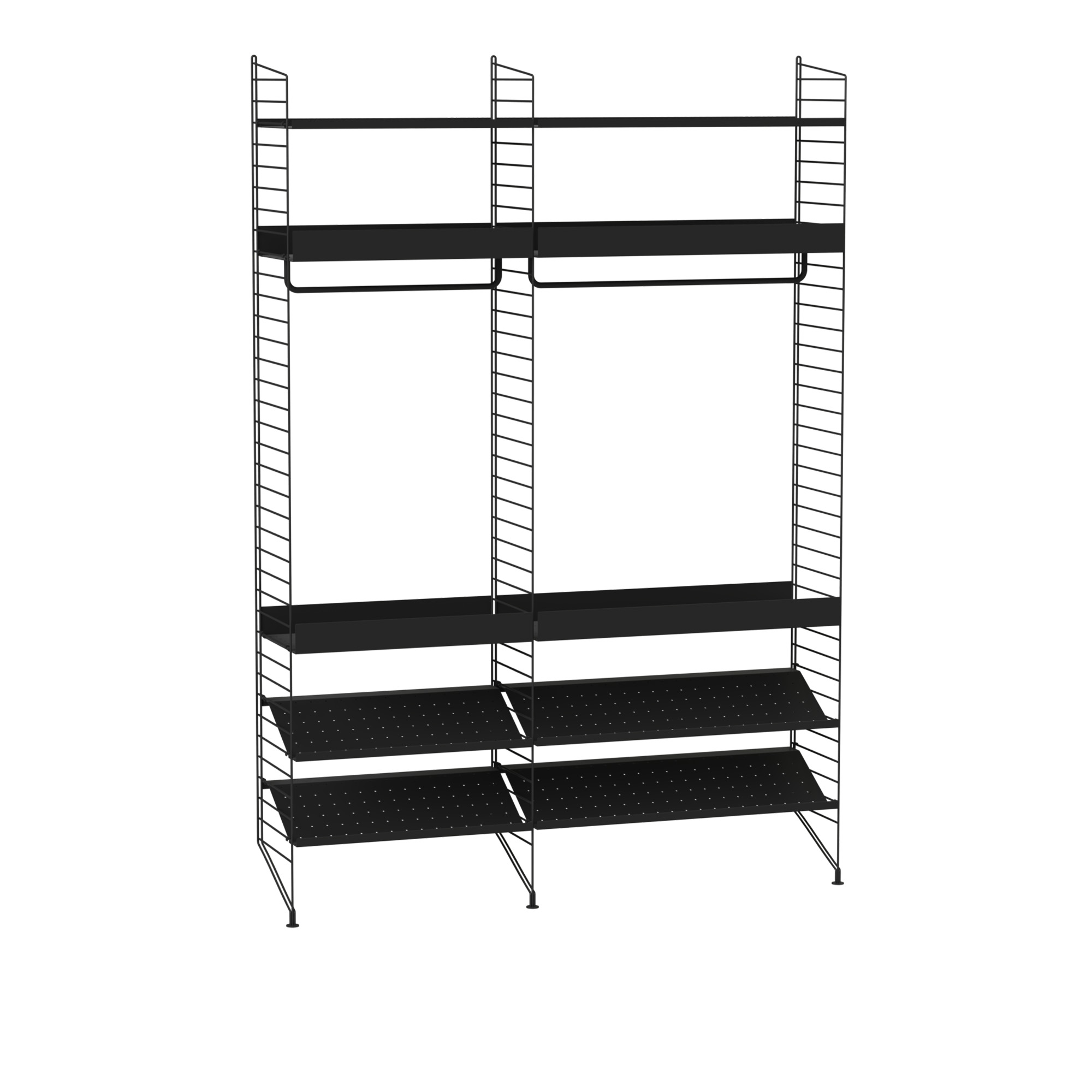 Sovrum hyllesystem C er et gulvmontert hyllesystem fra String Sovrum-kolleksjonen. Det har to seksjoner og inkluderer stenger og skohyller for maksimal oppbevaring.