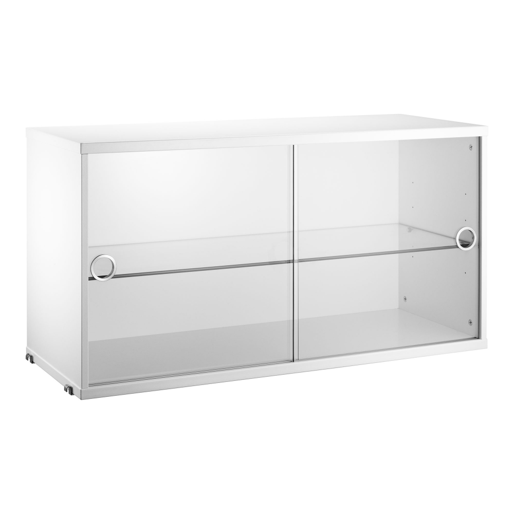 Strings vintrinskåp med skjutbara dörrar är en del av det klassiska hyllsystemet från String, formgiven av Nisse Strinning. Vintrinskåpet är kompatibel till gavlar med 30 centimeters djup och finns i flera olika utföranden.
