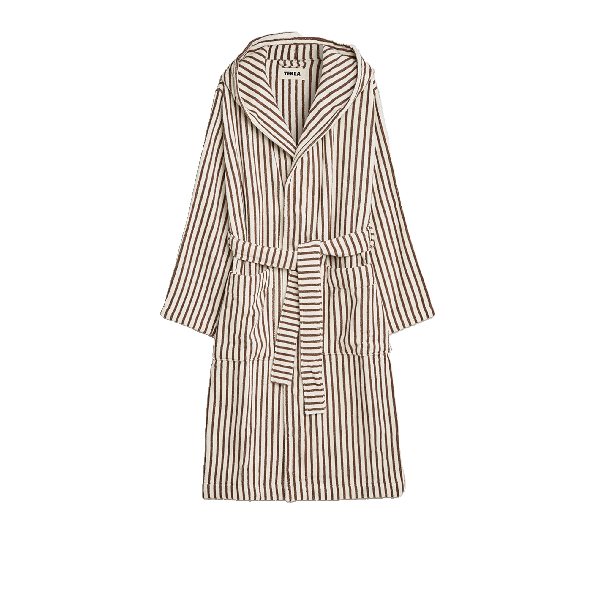 Hooded Bathrobe i mönstret Kodiak Stripes från Tekla är en stilren och bekväm badrock med unisex-passform....
