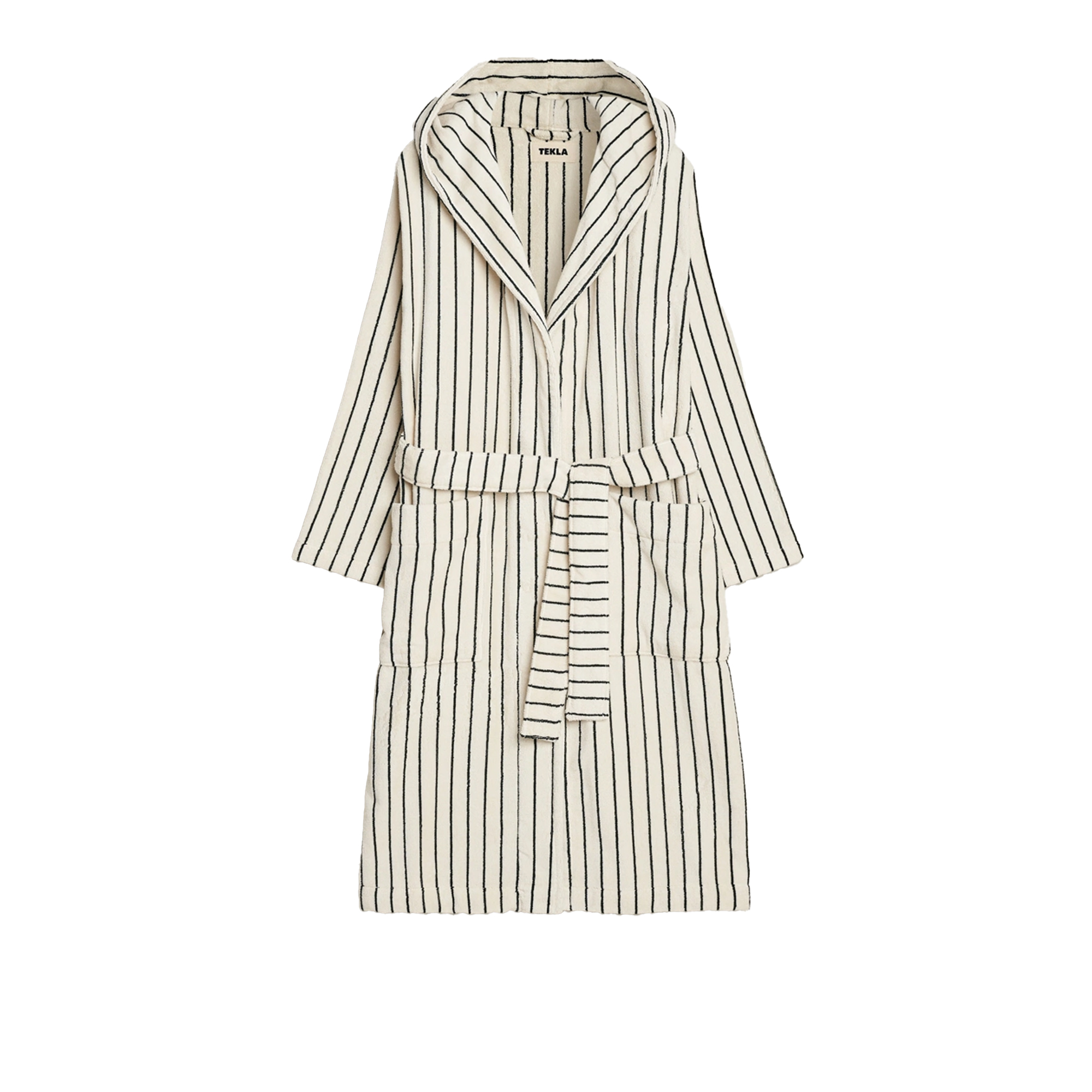 Hooded Bathrobe i mönstret Kodiak Stripes från Tekla är en stilren och bekväm badrock med unisex-passform....