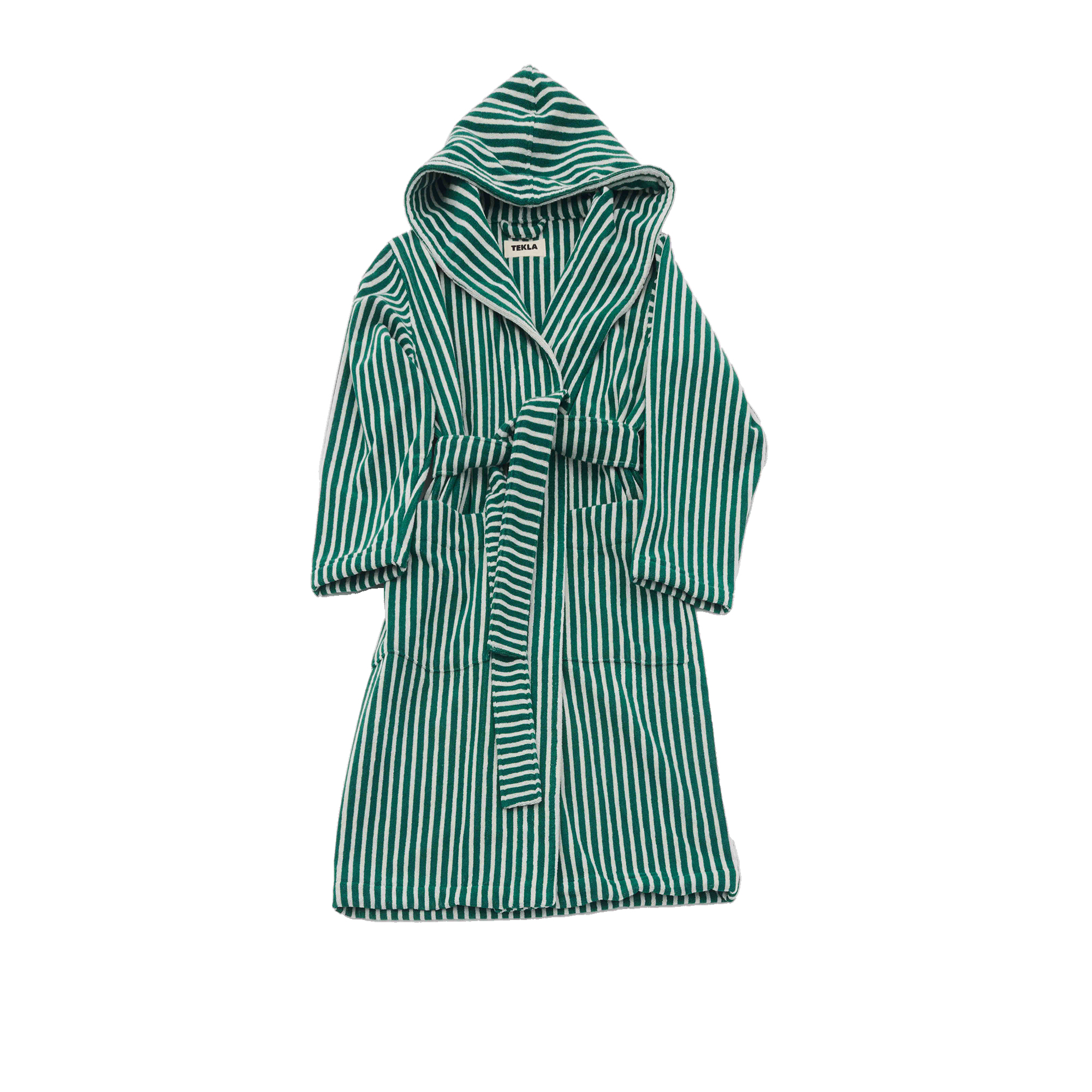 Tekla - Hooded Bathrobes S, Teal Green Stripes - Badrockar - Grön - Bomull