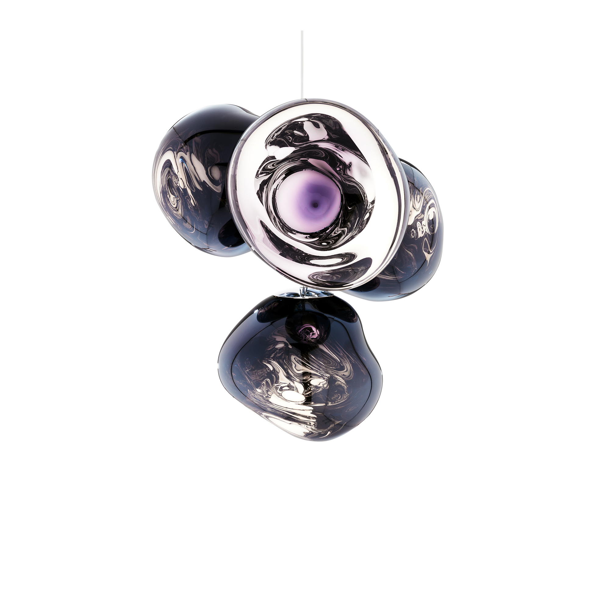 Melt Chandelier Small är en elegant takbelysning från designhuset Tom Dixon. Denna ljuskrona är skapad av polykarbonatmaterial och finns tillgänglig i fyra distinkta ytfinishar. Designen av Melt Chandelier Small består av en samling om fyra sfäriska element som utstrålar från centrala stålrör och når en totalhöjd på en meter. Denna lampa representerar det nyaste bidraget till Melt-kollektionen, som är berömd för sitt distinkta designuttryck som omedelbart fångar betraktarens öga, oavsett vilken typ av rum eller miljö den installeras i. För de som söker en större variant, erbjuds Melt Chandelier även i en mer omfattande dimension.