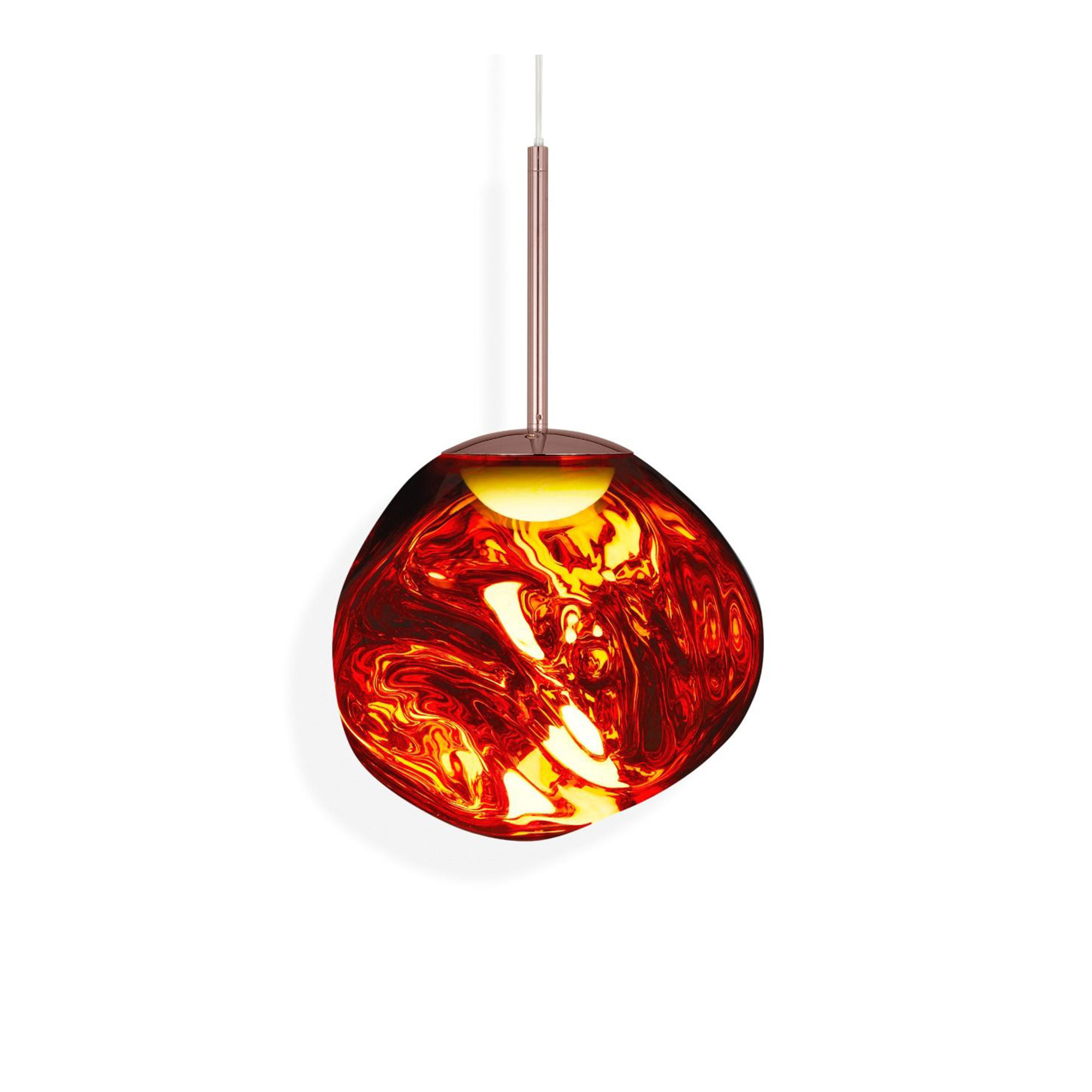 Med Melt Pendant har Tom Dixon tagit den avancerade processen med vakuummetallisering till en helt ny nivå. Melt togs fram i samarbete med det innovativa kvinnliga svenska designkollektivet Front. Ljuset reflekteras på sfärens ojämna yta och skapar då en dramatisk illusion av glödhett glas. Tänd är lampan genomskinlig, men släckt blir den helt spegelblank. Pendelns spännande skiftningar syns även i dagsljus. Melt Pendant kommer i två olika storlekar och i utförandena krom, guld och koppar.