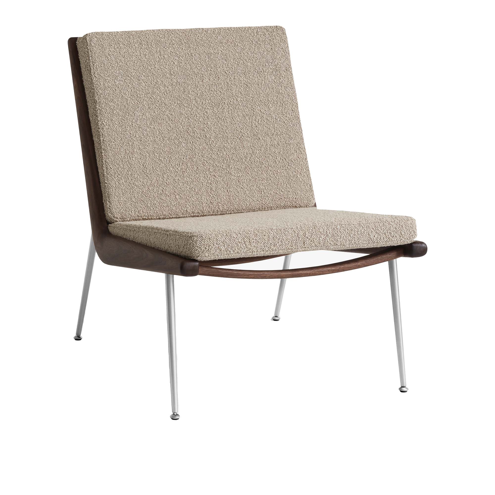 &Tradition - Boomerang HM1, Karakorum 003/Walnut/Stainless Steel Legs - Fåtöljer - Hvidt & Mølgaard - Beige - Metall/Trä/Textilmaterial/Skum/Plast