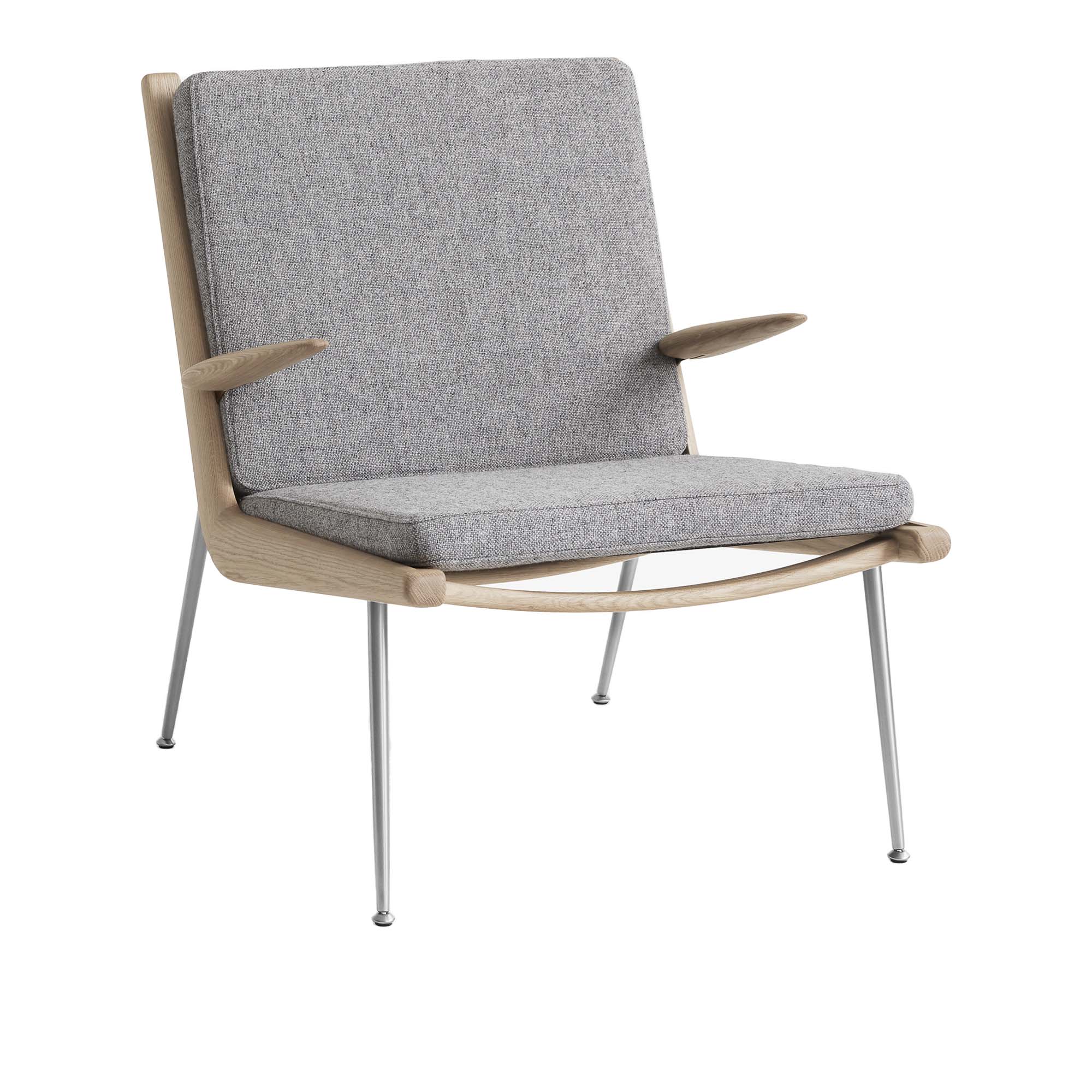 &Tradition - Boomerang HM2, Hallingdal 130/Oiled Oak/Stainless Steel Legs - Fåtöljer - Hvidt & Mølgaard - Grå - Metall/Trä/Textilmaterial/Skum/Plast