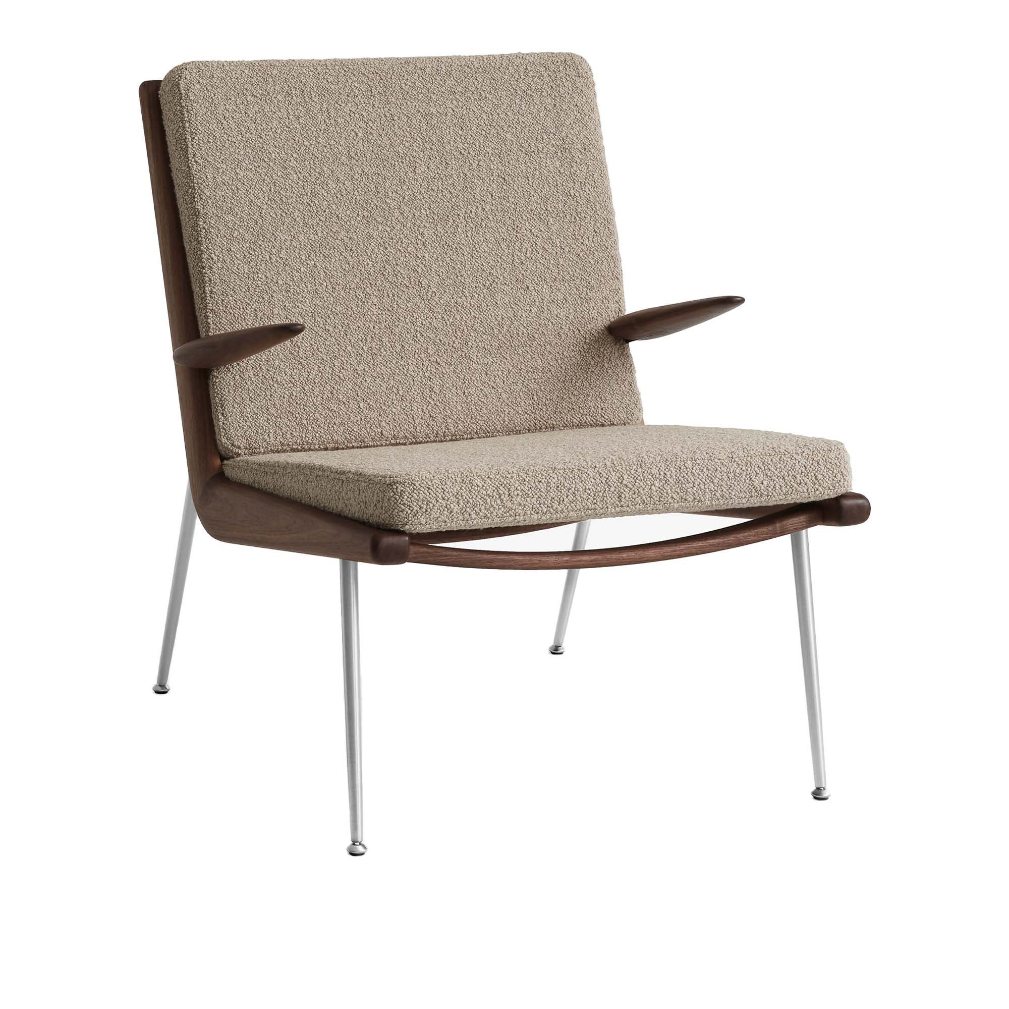 &Tradition - Boomerang HM2, Karakorum 003/Walnut/Stainless Steel Legs - Fåtöljer - Hvidt & Mølgaard - Beige - Metall/Trä/Textilmaterial/Skum/Plast