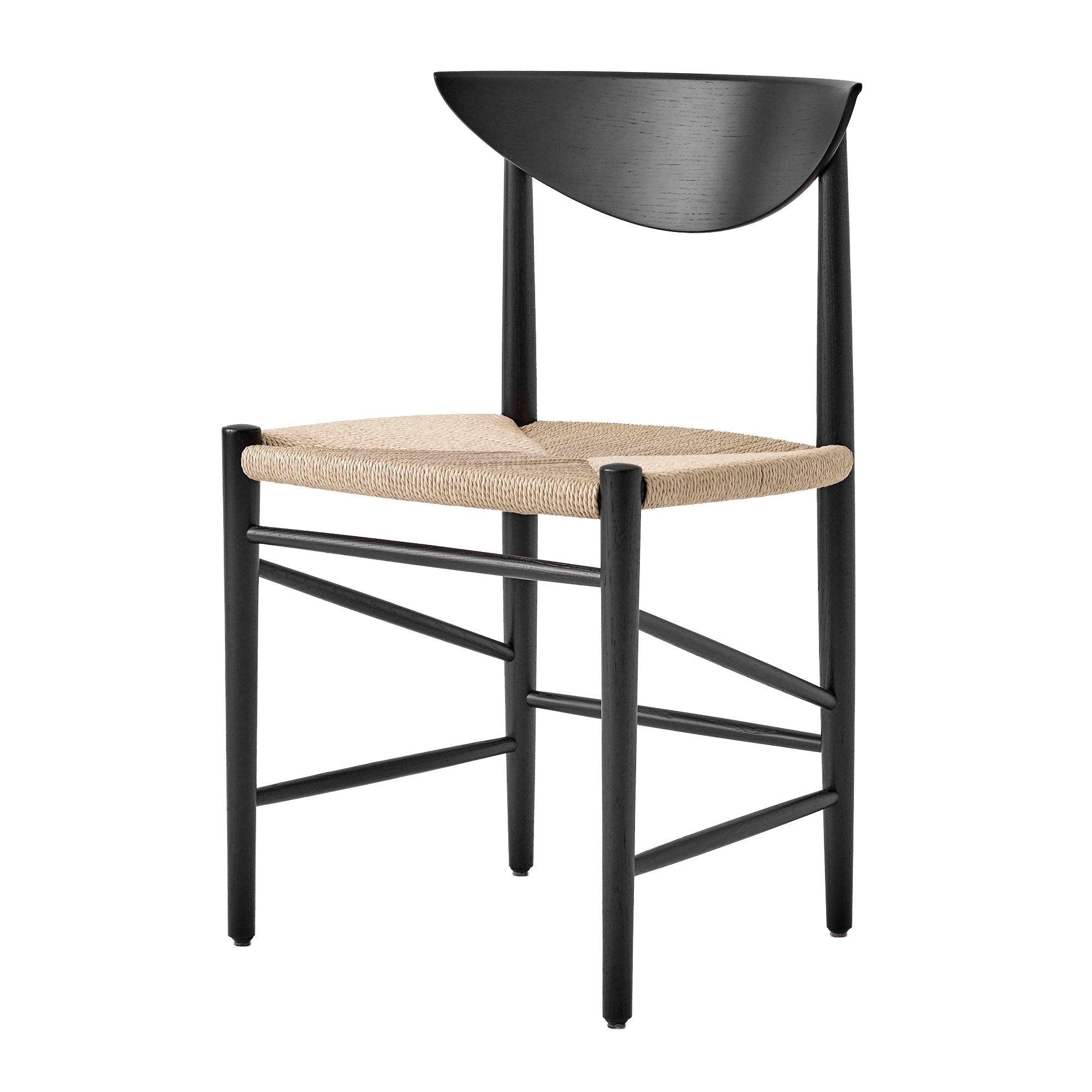 &Tradition - Drawn HM3 Black Lacquered Oak / Paper Cord - Matstolar - Hvidt & Mølgaard - Svart - Papper/Trä