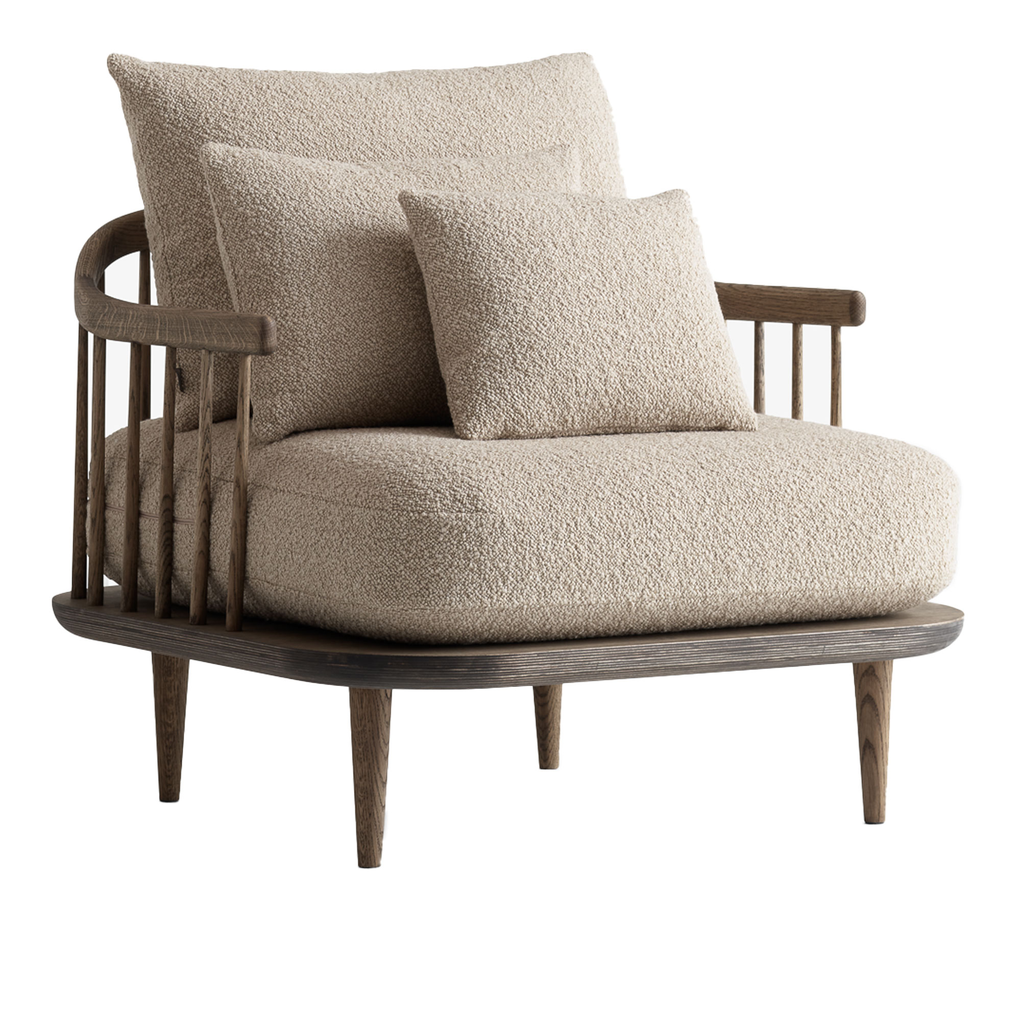 Fly är en serie loungemöbler som inbjuder till vila och umgänge. Sitsarna har optimal komfort och tanken med de lösa ryggkuddarna är att användaren själv ska arrangera dem för att sitta så bekvämt som möjligt. Fly kommer är tillverkad i massiv ek med ytbehandlingar som åldras med grace och bara blir vackrare med åren. Fly har en sittkudde fylld med kallskum.