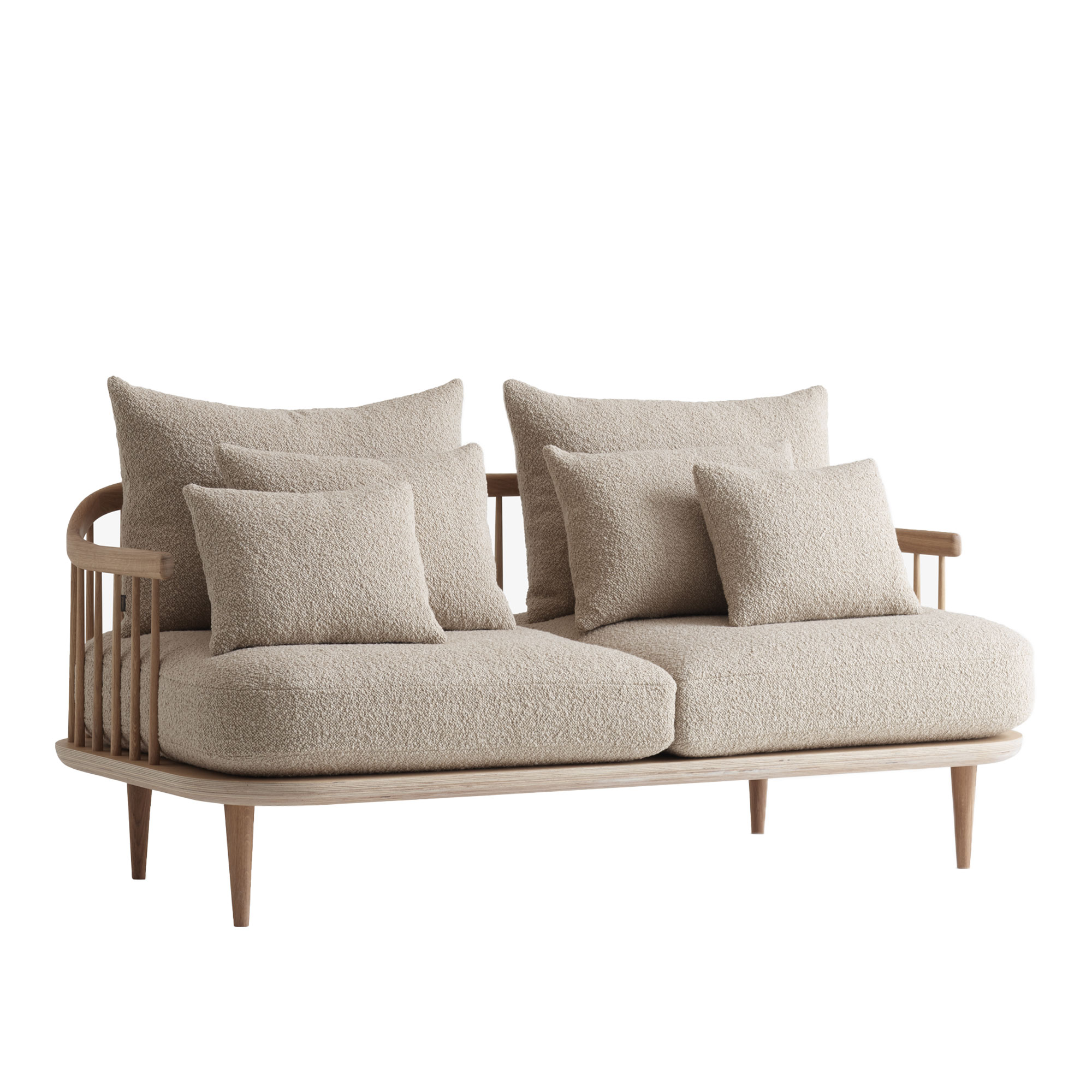 Fly är en serie loungemöbler som inbjuder till vila och umgänge. Sitsarna har optimal komfort och tanken med de lösa ryggkuddarna är att användaren själv ska arrangera dem för att sitta så bekvämt som möjligt. Fly kommer är tillverkad i massiv ek med ytbehandlingar som åldras med grace och bara blir vackrare med åren. Fly har två sittkuddar fyllda med kallskum.