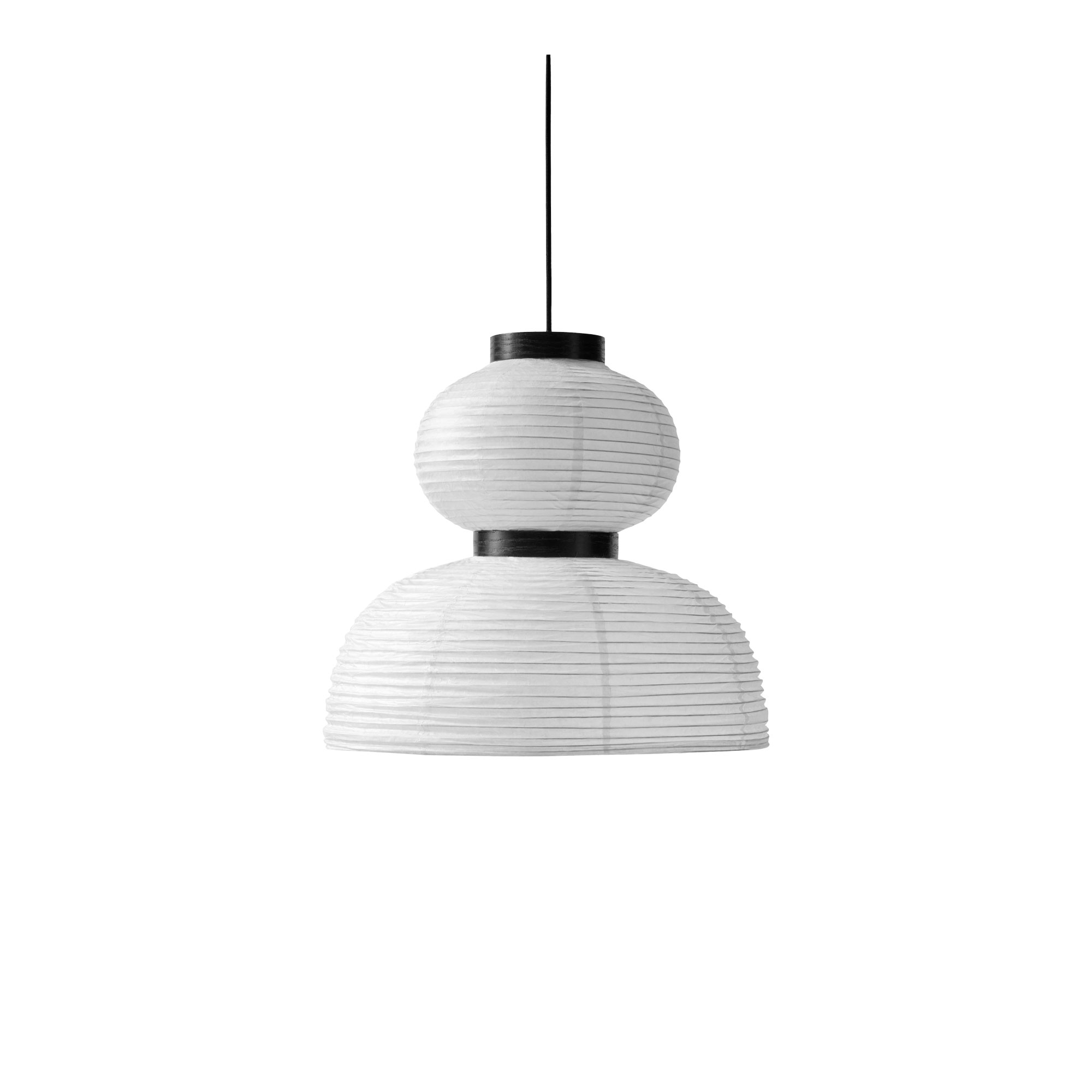 Formakami Pendant JH4 är en pendel från &Tradition. Öst möter väst i formgivaren Jaime Hayóns lekfulla tolkning av den klassiska rislampan. För &tradition har han skapat en serie lampor där den traditionella rislampan har fått en estetik som passar dagens urbana inomhusmiljöer. De vackra lamporna görs för hand och är i elfenbensvitt rispapper med detaljer av svartbetsad ek. Formakami har två ljuskällor – en i den övre delen och en i den nedre delen. Detta gör att lamporna skapar ett mjukt, allmänt sken samtidigt som de ger ett användbart nedåtriktat ljus. Finns i flera olika utföranden.
