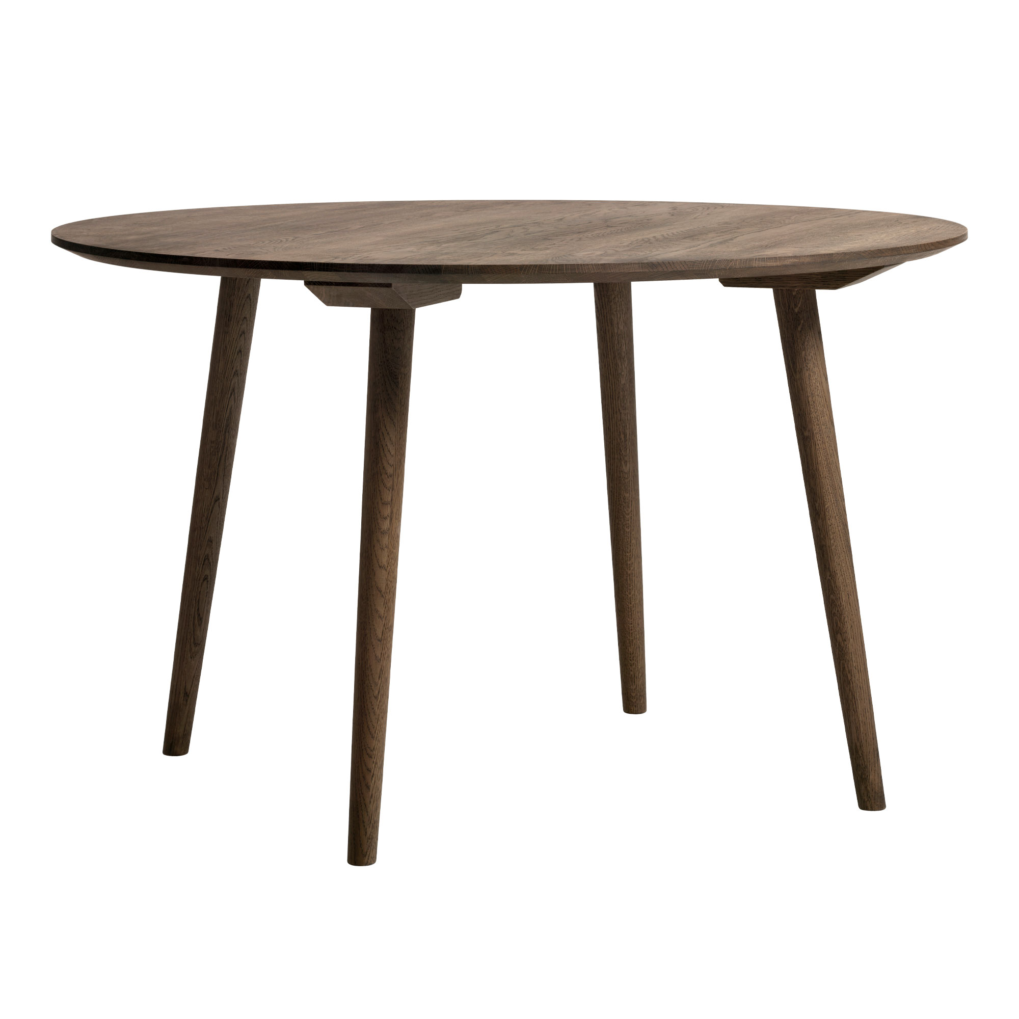 In Between - ett runt matbord i massiv ek formgivet av Sami Kallio för &Tradition. Massiv ek är ett hållbart, tillförlitligt trä som genomsyras av det skandinaviska arvet och i tillverkningsprocessen av In Between använder man sig av traditionella tekniker. Benens vinklar matchar vinklarna på benen på matstolen i samma serie.