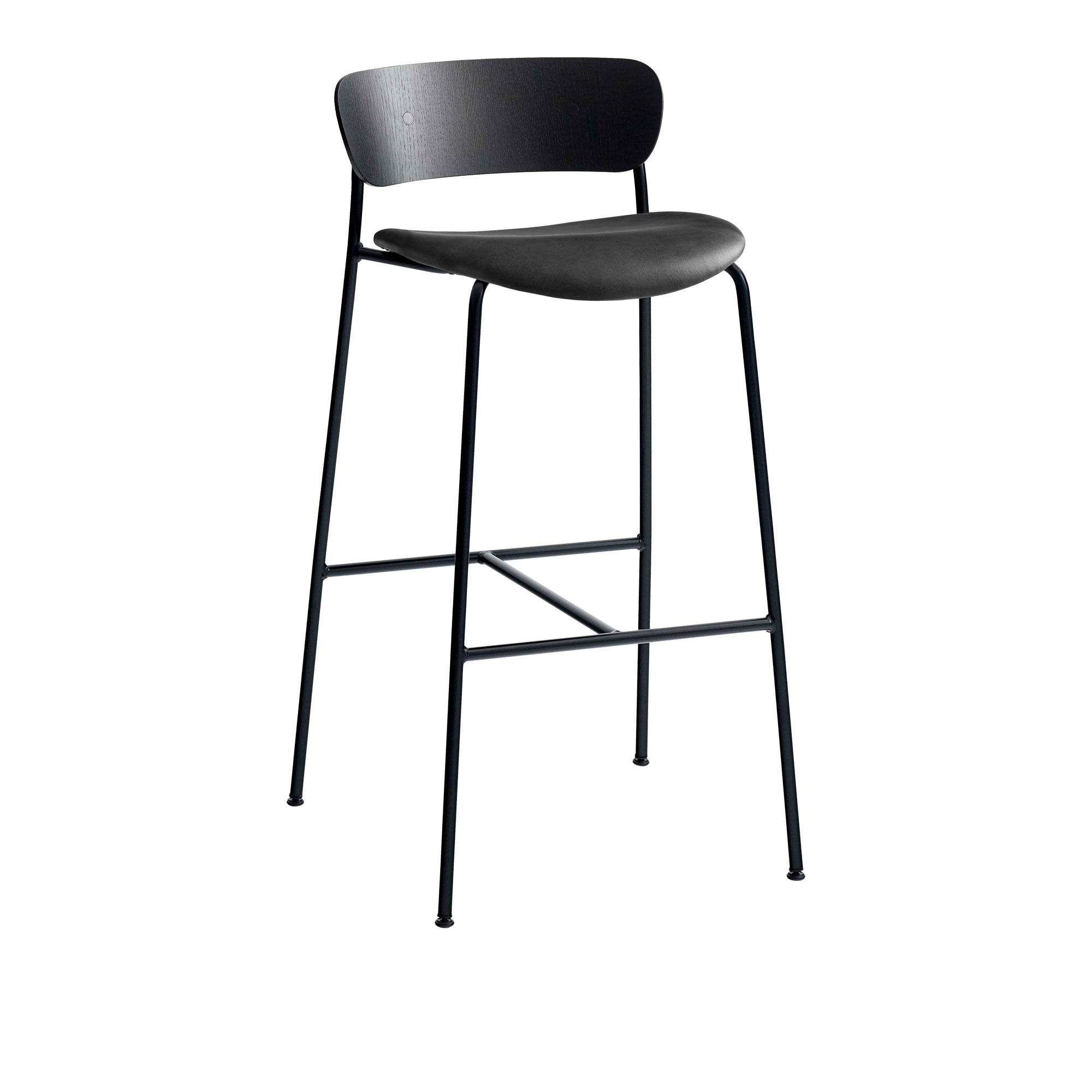 &Tradition - Pavilion AV10, Black Lacquered Oak Leather cat.2, Noble Black - Barstolar - Anderssen & Voll - Metall/Trä