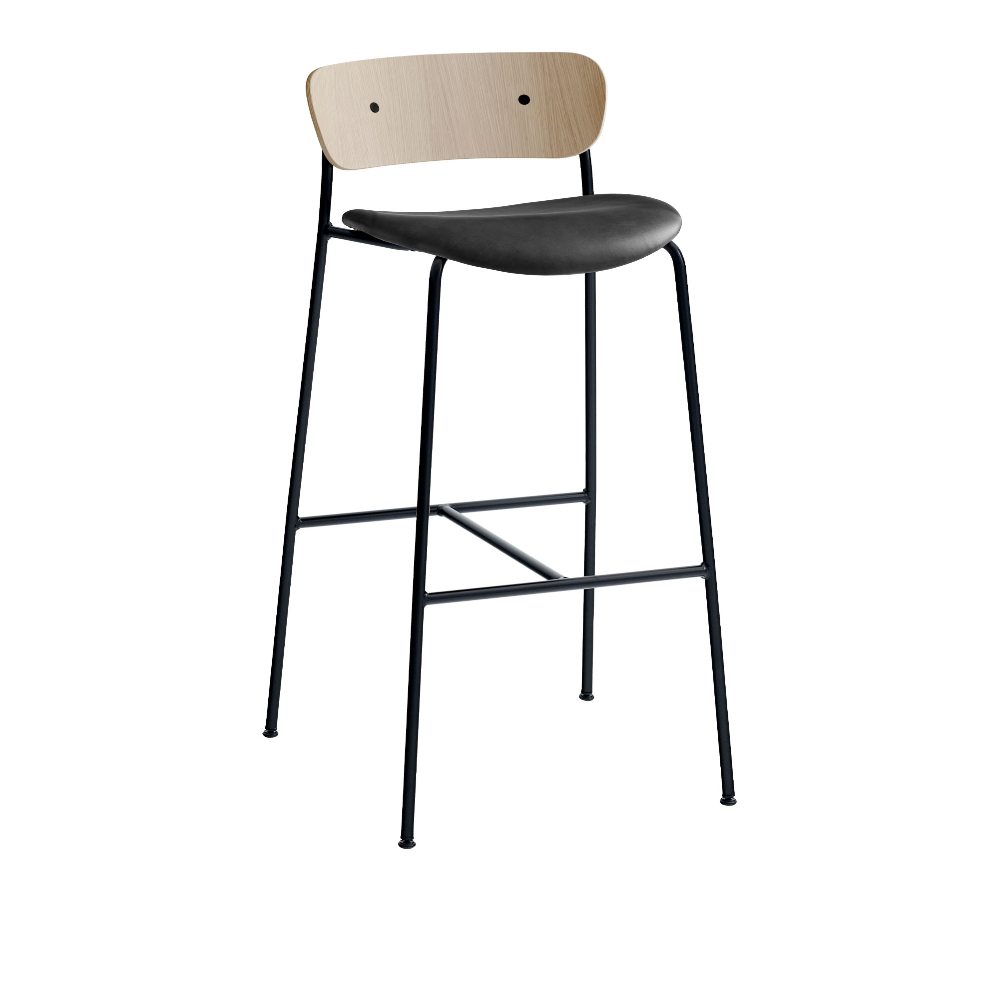 &Tradition - Pavilion AV10, Lacquered Oak Leather cat.2, Noble Black - Barstolar - Anderssen & Voll - Metall/Trä