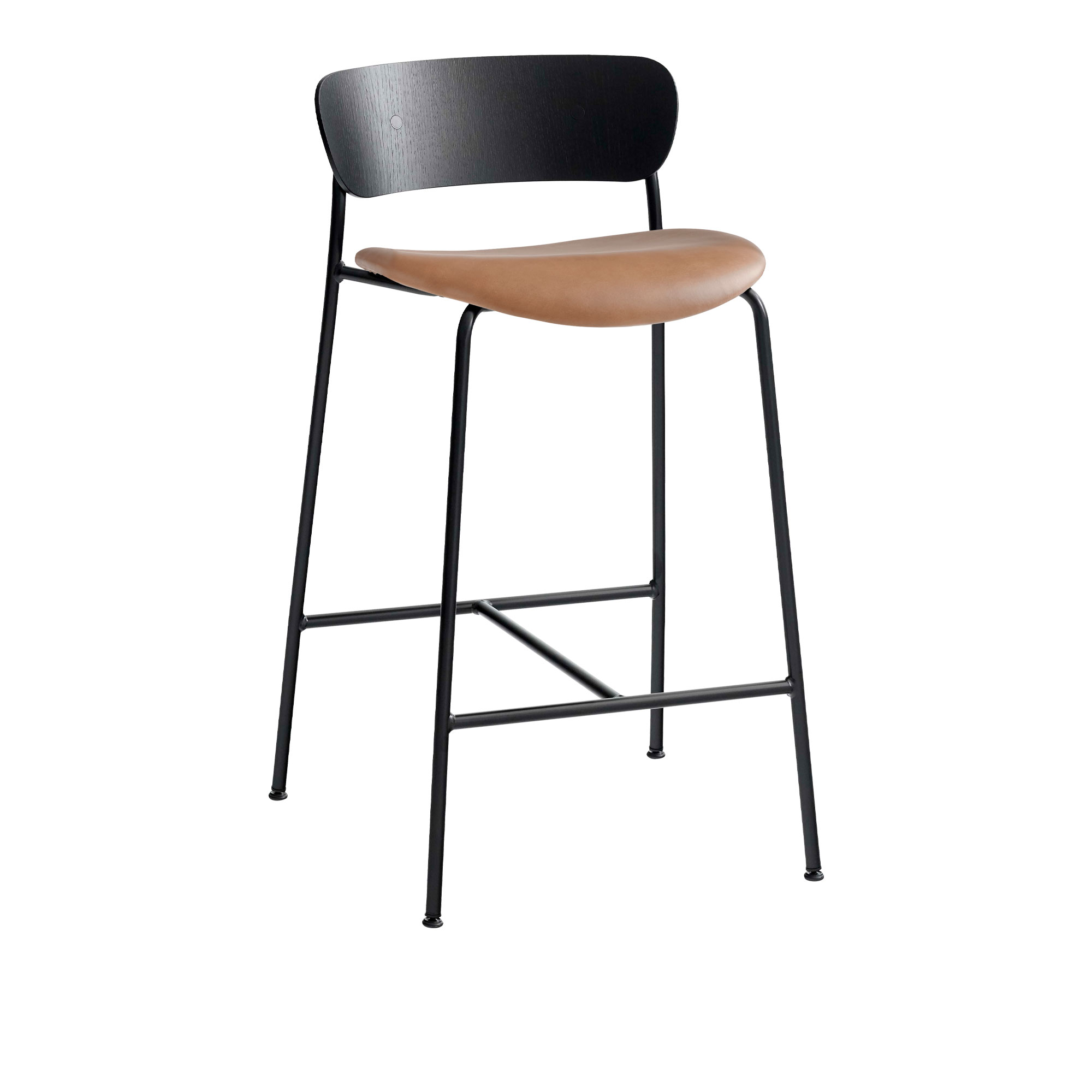 &Tradition - Pavilion AV8, Black Lacquered Oak Leather cat.2, Noble Cognac - Barstolar - Anderssen & Voll - Metall/Trä