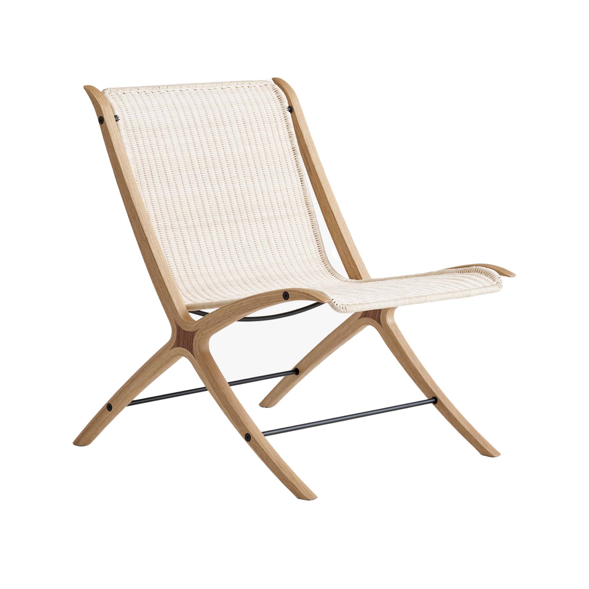 X Lounge Chair HM10 är en fåtölj från &Tradition formgiven av Hvidt & Mølgaard. Stolen lanserades redan 1959 som en uppföljning av AX Chair som blev en storsäljare under tidigt 50-tal. Den eleganta stolen är skapad med naturnära material som tillsammans med det okomplicerade formspråket hamnar i en perfekt symbios, en klassiker många år framöver. Stolen är tillverkad i ek med detaljer i valnöt samt sits i flätad rotting.