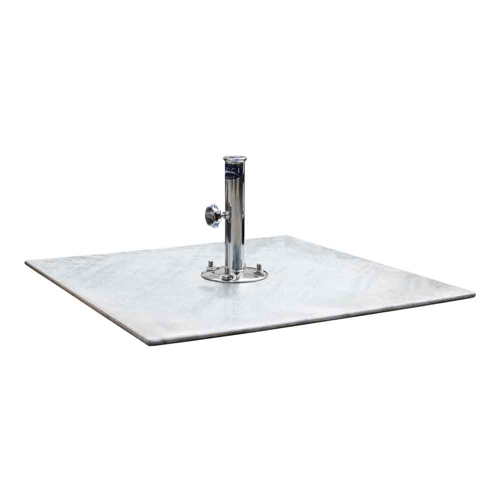 Kvadratisk parasollfot från Tuuci. Denna fot väger 64 kg och är tillverkad av galvaniserat stål med anslutning i rostfritt stål.
