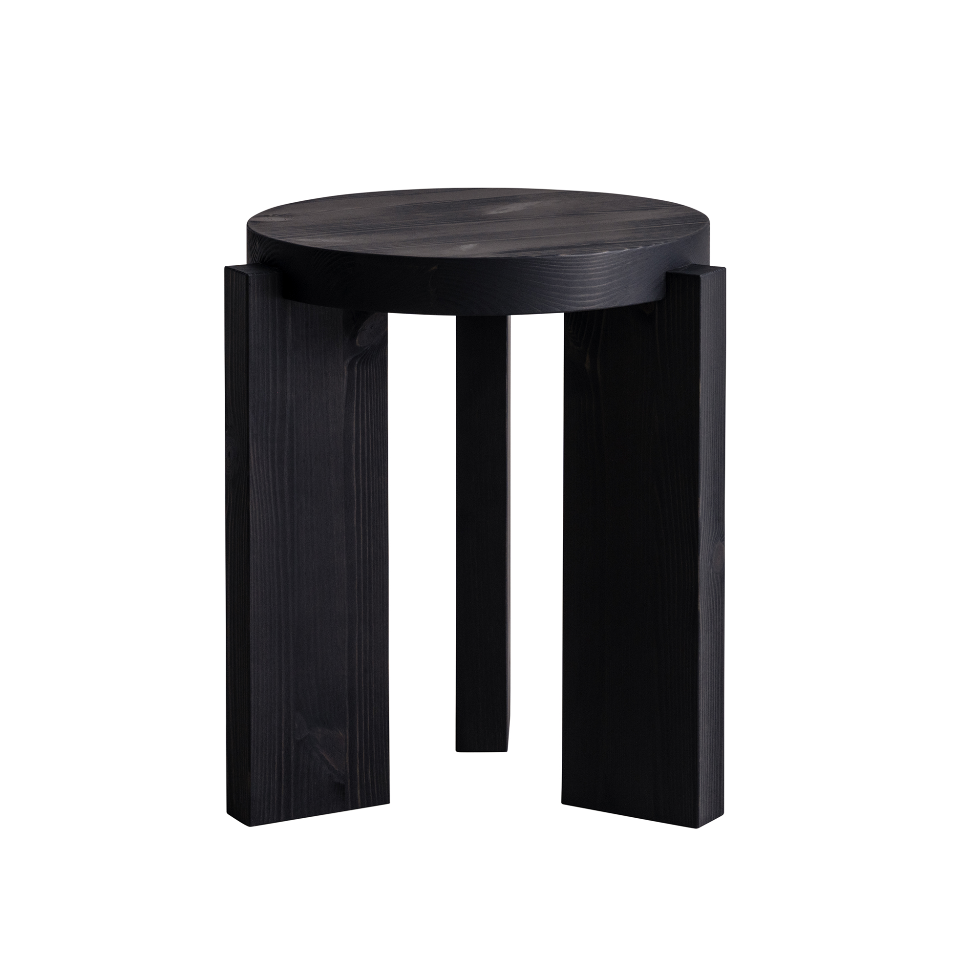 001 Stool Black är en pall från det finska varumärket Vaarnii. Den är ritad av Fredrik Paulsen som del av 001-serien, där massiv furu utforskas i olika former. I denna variant har träet genomgått en infärgning som ger en djupare svärta samtidigt som ådringen förblir synlig.