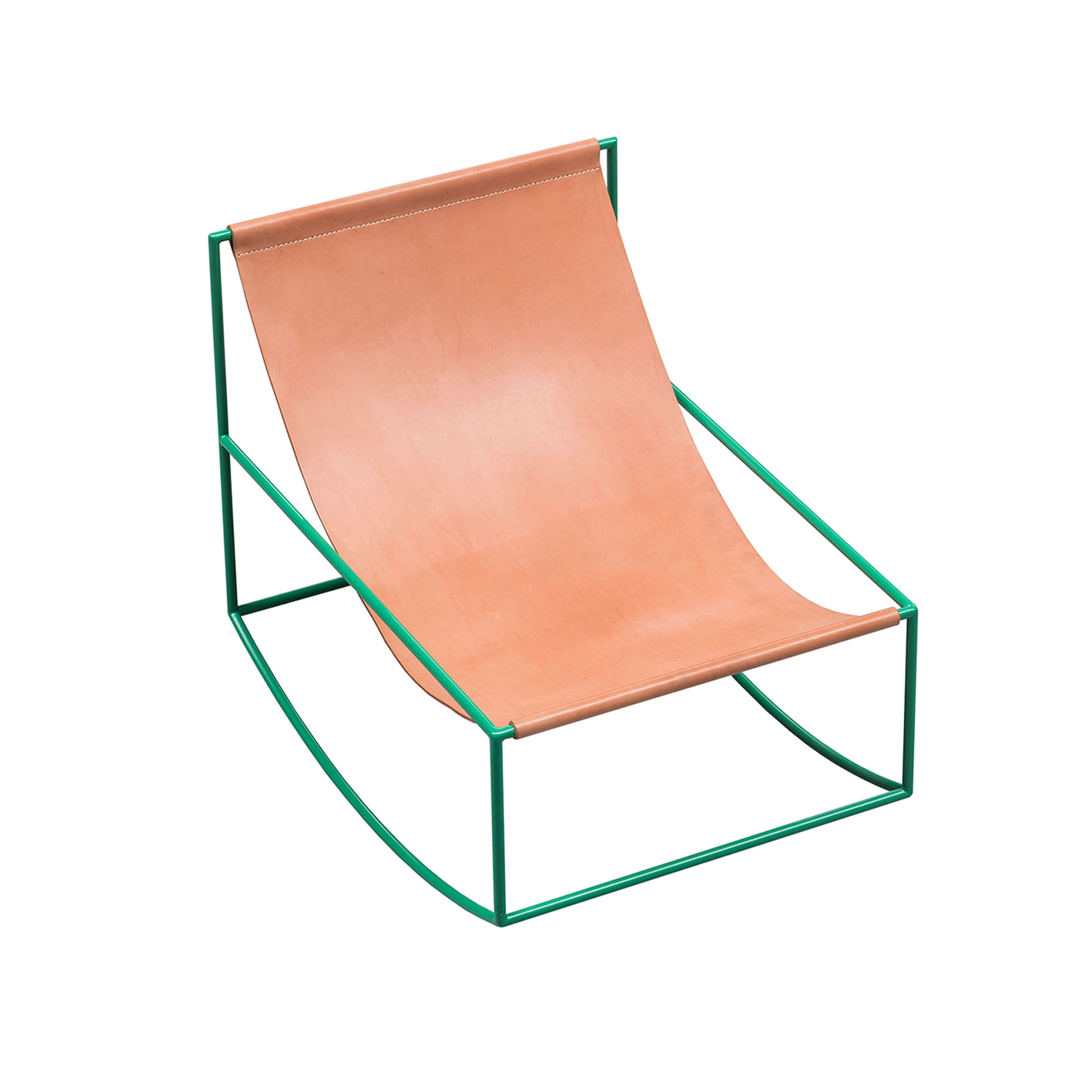 Valerie Objects - Rocking chair green/leather - Matstolar - Muller Van Severen - Grön - Metall/Textilmaterial