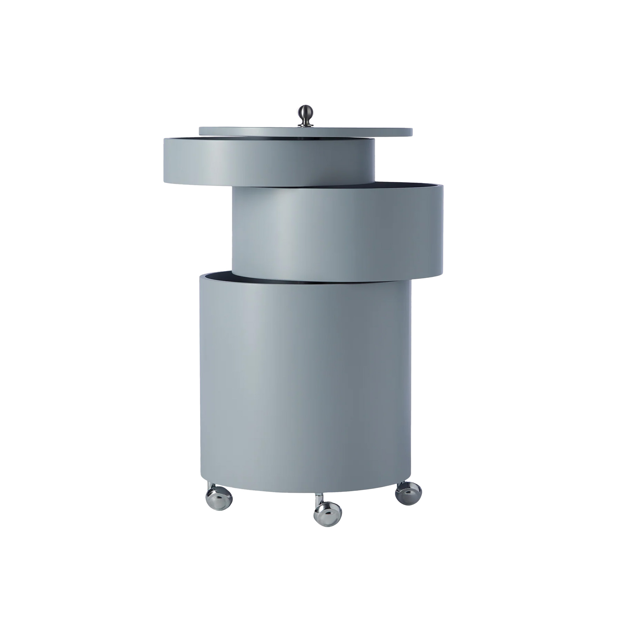 Verner Pantons Barboy från Verpan är ett anpassningsbart sidobord och en mobil förvaringsmöbler i ett. Tillverkad i formad och lackerad MDF och försedd på med kromade metallhjul.