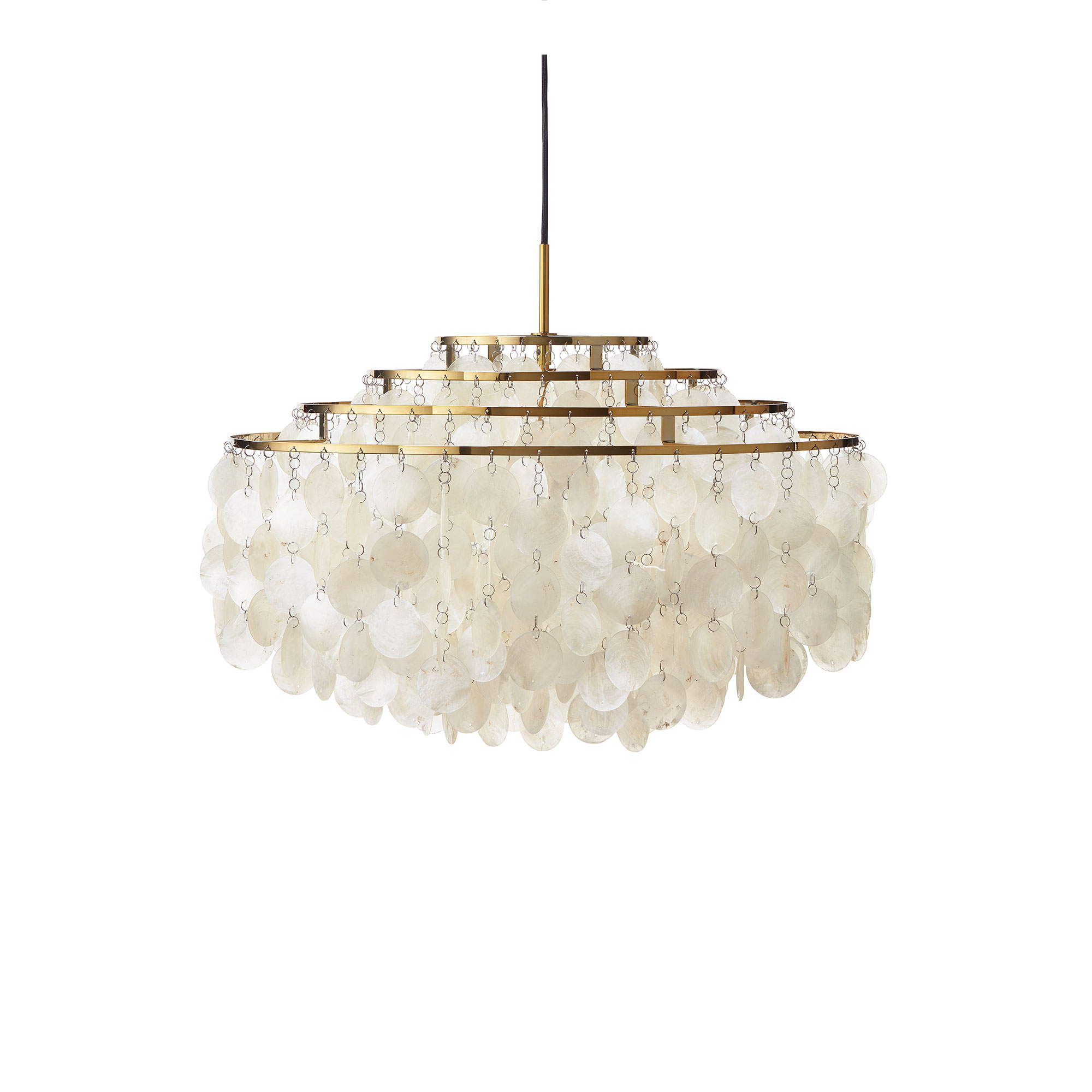 Verpans populære produkt, Fun 10DM, ble skapt av den velkjente designikonet Verner Panton i 1964. Denne taklampen er unikt designet med plater av perlemor fra skjell, som er hengt opp i små ringer av rustfritt stål. Lampen gir fra seg et mykt og diffust lys som skaper en behagelig atmosfære, og når platene beveger seg skapes en harmonisk klingende lyd som minner om klangen fra et vindspill. Modellen tilbys med to forskjellige finisher for rammen, enten i krom eller messing. Fun 10DM er ideell som et sentralt punkt i en stue, over et spisebord eller som et blikkfang i en inngangshall.
