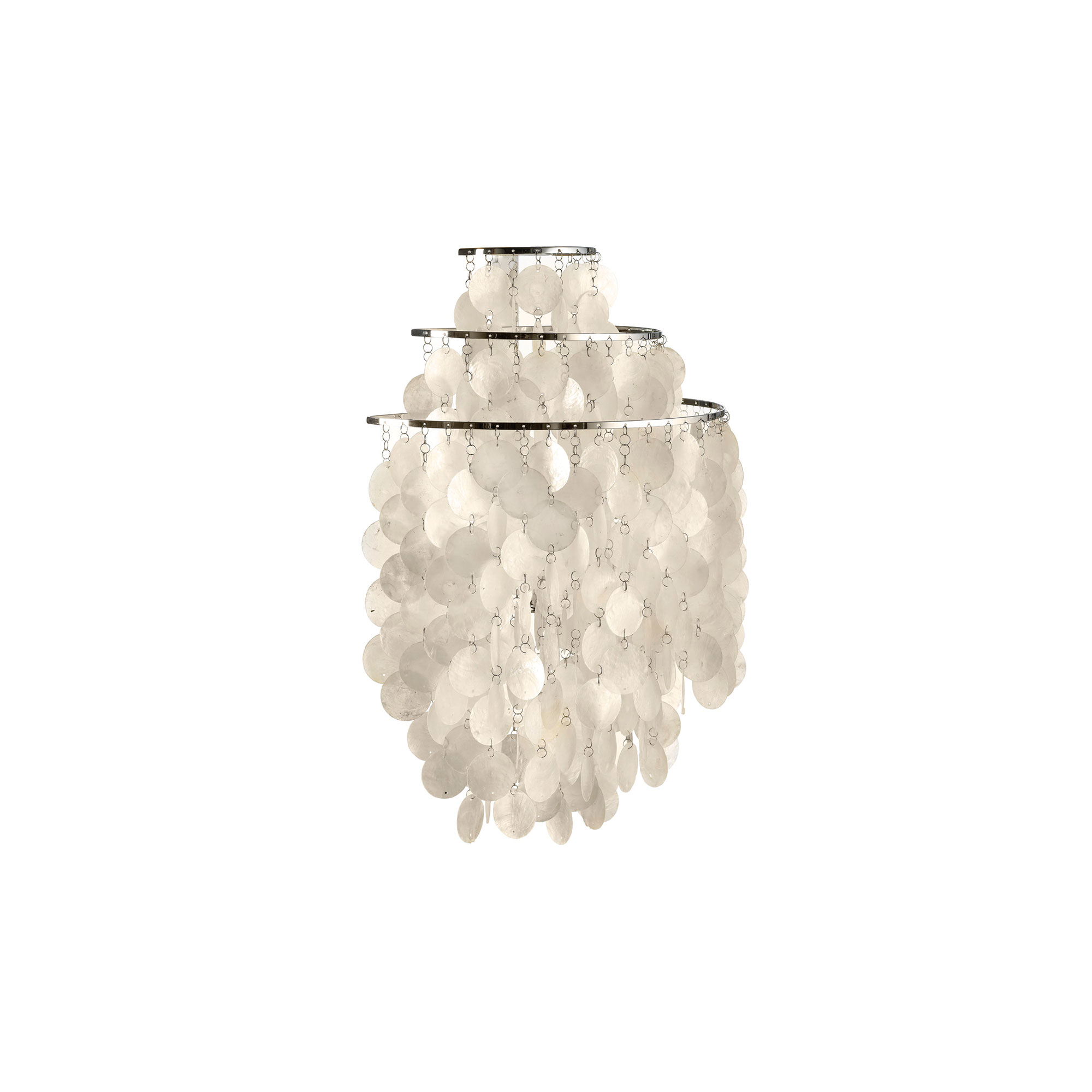 Vägglampan Fun 1WM är ett verk från Verpan, skapat av den enastående designern Verner Panton. Denna belysningsarmatur är konstruerad med delikata pärlemorskivor som är sammanfogade med rostfria stålcirklar. Ljuset som avges när lampan lyser är mjukt och sprider sig genom skivorna av pärlemor, vilket ger en effekt som påminner om ljudet från ett vindspel när det rör sig. Lampan är lika imponerande släckt, då naturligt ljus eller annan belysning i rummet reflekteras i pärlemorskivorna och skapar en levande atmosfär och visuella effekter i både omgivningen och på själva ljuskällan.