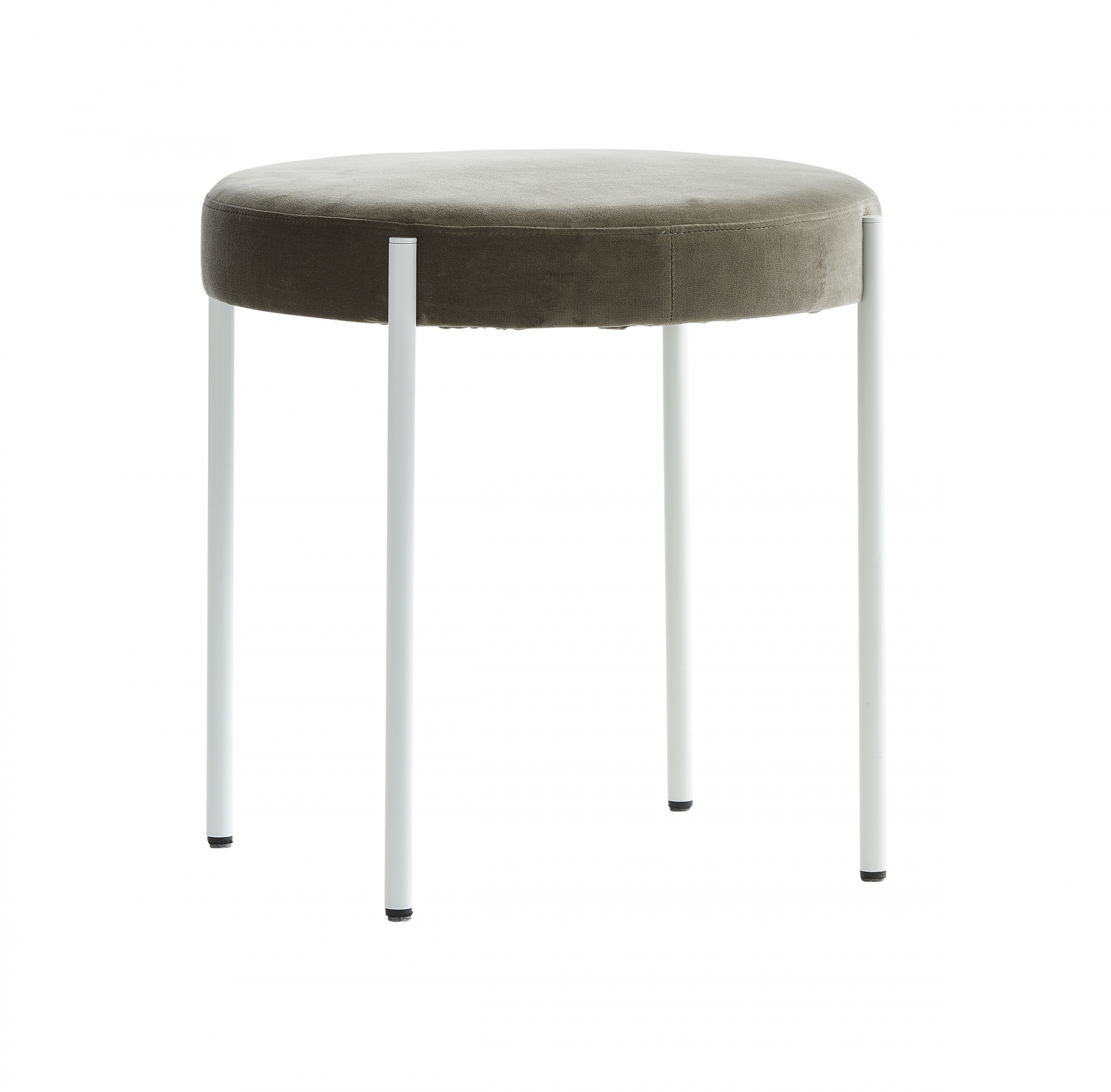 Den vita sittpallen Series 430, skapad av den danske designern Verner Panton 1967, är ett framstående exempel på skandinavisk design från Verpan. Dess distinkta estetik manifesteras i det speciella underredet som sveper runt sitsens yttre kanter. Tillverkat av vit pulverlackerad metall, har underredet mjuka, rundade linjer som harmonierar med den cirkulära sitsen klädd i kvadratiska tygpaneler. Sitsen är konstruerad av plywood och fylld med skum för optimal komfort. Panton är känd för att ofta integrera rundade element i sina verk, vilket återspeglas i både sitsens och underredets form på Series 430 Stool. Denna eleganta pall i serien finns tillgänglig med ett urval av Kvadrat-tyger och kan även fås med ett svart underrede. Inom samma kollektion erbjuds även matbord, barstolar och stolar för matplatsen.