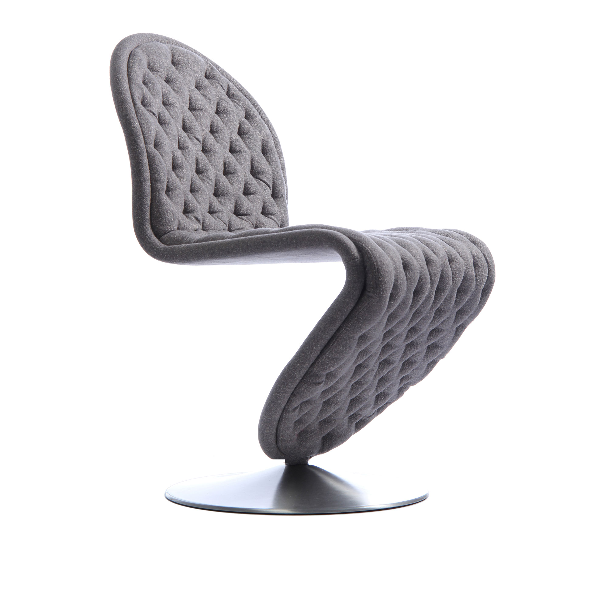 Inspirert av Gerrit Rietvelds berømte Zig Zag-stol fra 1930-tallet, skapte Verner Panton den velkjente Panton Chair. Denne stolen ble forløperen til en ny æra av stoler, nemlig System 1-2-3 Dining Deluxe. Lansert i 1973 av samme designer, Verner Panton, er denne spisestolen polstret med VOSS-skum og har et trekk av knappstoppet stoff fra Kvadrat, hvilende på en base av aluminium. System 1-2-3 Dining Deluxe er en del av System-serien, som inkluderer spisestoler, lounge-stoler, et speil og et klesstativ. Den S-formede stolen tilbys i ulike Kvadrat-stoffer og kan fås med et rundt eller sommerfuglformet understell. Denne designklassikeren er et utmerket valg for det moderne hjemmet og dens tidløse design sikrer at den forblir relevant og holdbar gjennom årenes trender og kvalitetskrav.