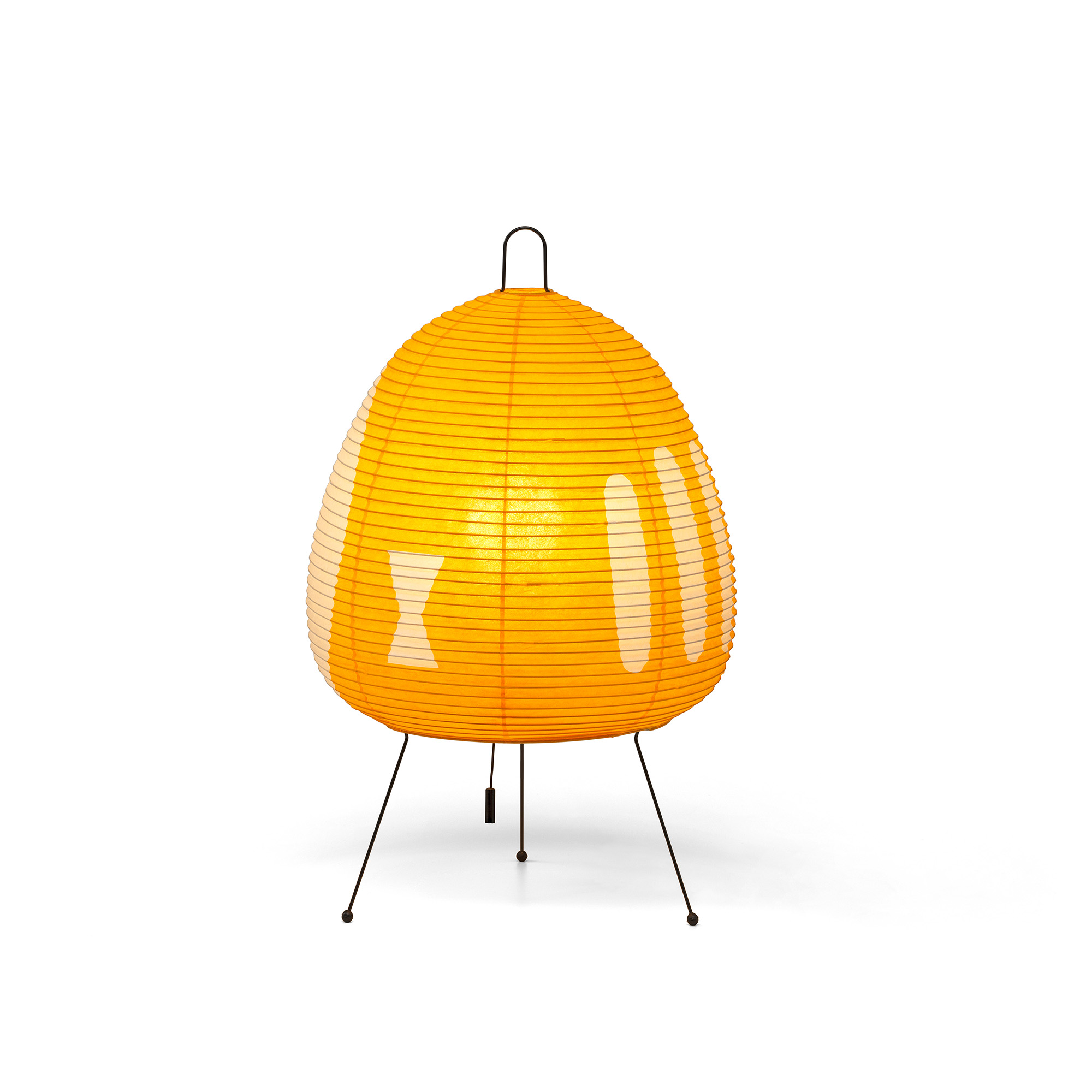 Akari 1AY är en bordslampa designad av Isamu Noguchi för Vitra. Lampan kommer i shojipapper. Den handgjorda lampan har en stålram och har en naturlig form med mjuka linjer som kontrasterar mot de tre raka lampbenen, som är svartmålade. Dessutom är lampan dekorerad med ett abstrakt mönster i orange nyanser, vilket bidrar till dess unika och konstnärliga uttryck. Designserien Akari, som omfattar olika typer av armaturer, skapades 1951 av Isamu Noguchi, en japansk-amerikansk skulptör, arkitekt och designer. Noguchis konstnärliga arbete förknippas ofta med abstrakt expressionism, och hans designestetik hade en betydande inverkan på designvärlden under 1950-talet. Inspirerad av traditionell japansk design utvecklade Noguchi belysningsserien Akari, som består av mer än 100 olika armaturer, inklusive golvlampor, bordslampor och taklampor. Alla Noguchis ljusskulpturer är tillverkade av shojipapper, som framställs av barken från mullbärsträd, och ger en varm och mysig belysning.