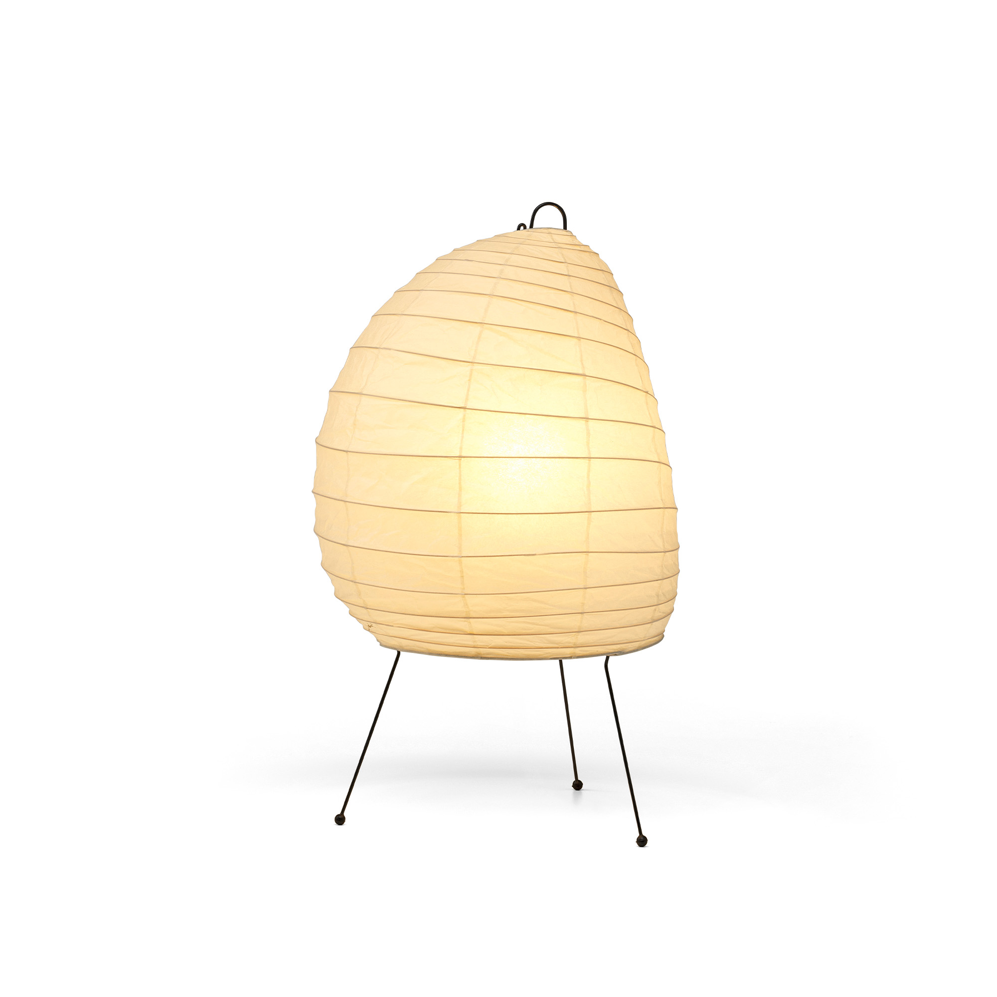 Bordslampan Akari 1N, skapad av Isamu Noguchi för Vitra år 1951, är en del av den omfattande Akari-lampkollektionen. Denna kollektion kännetecknas av sina ljuskällor som är noggrant handgjorda av shojipapper, ett speciellt papper framställt från mullbärsträdets bark. Akari 1N har en design som kombinerar vitt shojipapper med en robust stålkonstruktion. Dess struktur stöds av tre ben i svartlackerat stål. Varje enskild lampa i Akari-serien är ett resultat av japanska hantverkares skickliga arbete. Varje ljuskonstverk i Akari-kollektionen bär en unik logotyp som avbildar solen och månen, vilket tjänar som ett bevis på produkternas autenticitet.