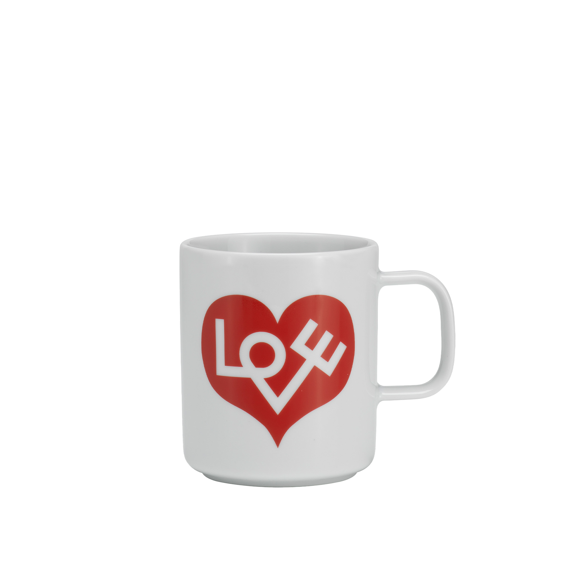 Coffee Mug Love Heart Crimson är en mugg designad av Alexander Girard för varumärket Vitra. Motivet, ett hjärta med texten ""LOVE"", speglar Girards grafiska stil och kombinerar funktionalitet med estetik. Den sprider värme och tillför en konstnärlig känsla till varje kaffestund, inspirerad av Girards skapande av levande miljöer.