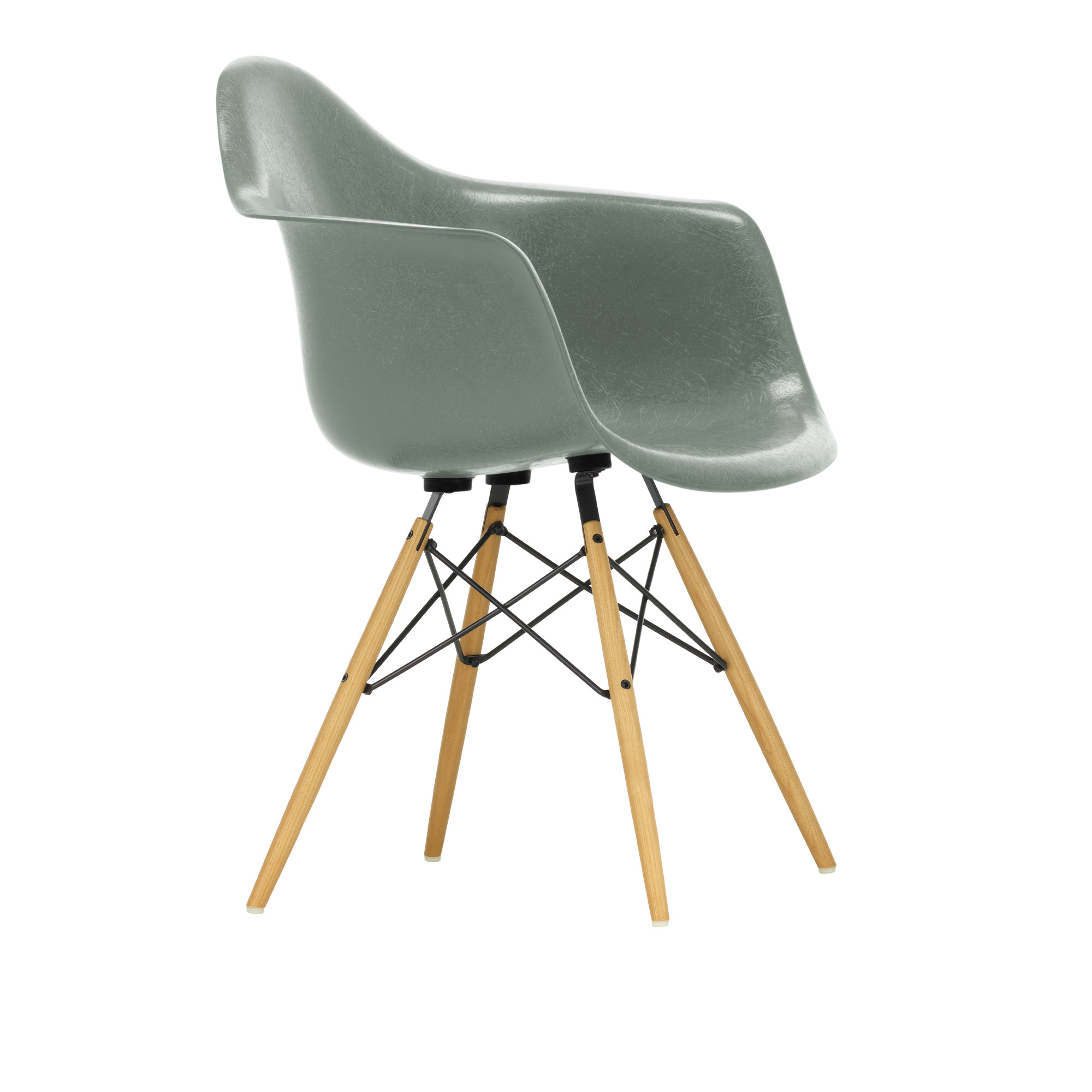 Armstolen Eames Fiberglass DAW, designad av Charles & Ray Eames, är en ikonisk föregångare i den berömda kollektionen av plaststolar. I början av 2020 återintroducerade Vitra dessa armstolar, vilket följde på framgångarna med de tidigare lanserade armstödslösa stolarna. Vitra utökade även sitt sortiment med modellerna DAR och DAX, tillverkade i samma glasfibermaterial. Man kan matcha stativ val av askträ eller lönn. För lönnträets del erbjuds ytterligare valmöjligheter med tre olika ytbehandlingsalternativ. Designduon Charles & Ray Eames introducerade sina revolutionerande glasfiberstolar redan 1950, vilka snabbt blev pionjärer för sin innovativa tillverkningsprocess och funktionella flexibilitet. Deras omedelbara framgång ledde snart till att designparet skapade flera nya baser för stolarna, vilka fortfarande anses vara symboliska inom designvärlden.