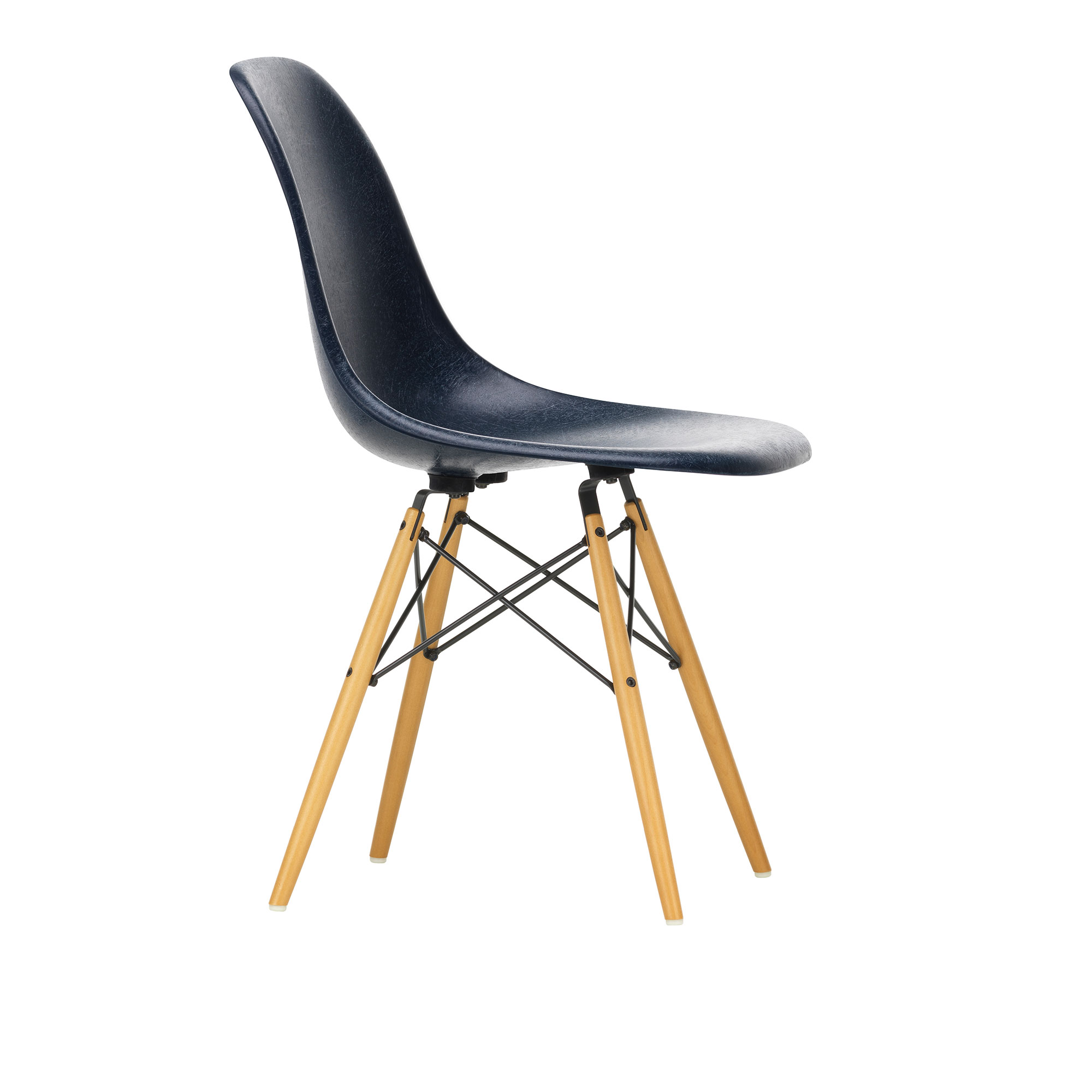Vitra - Eames Fiberglass Chair DSW - 02 Navy Blue - Golden Maple - Matstolar - Charles & Ray Eames - Blå - Metall/Trä/Syntetiskt