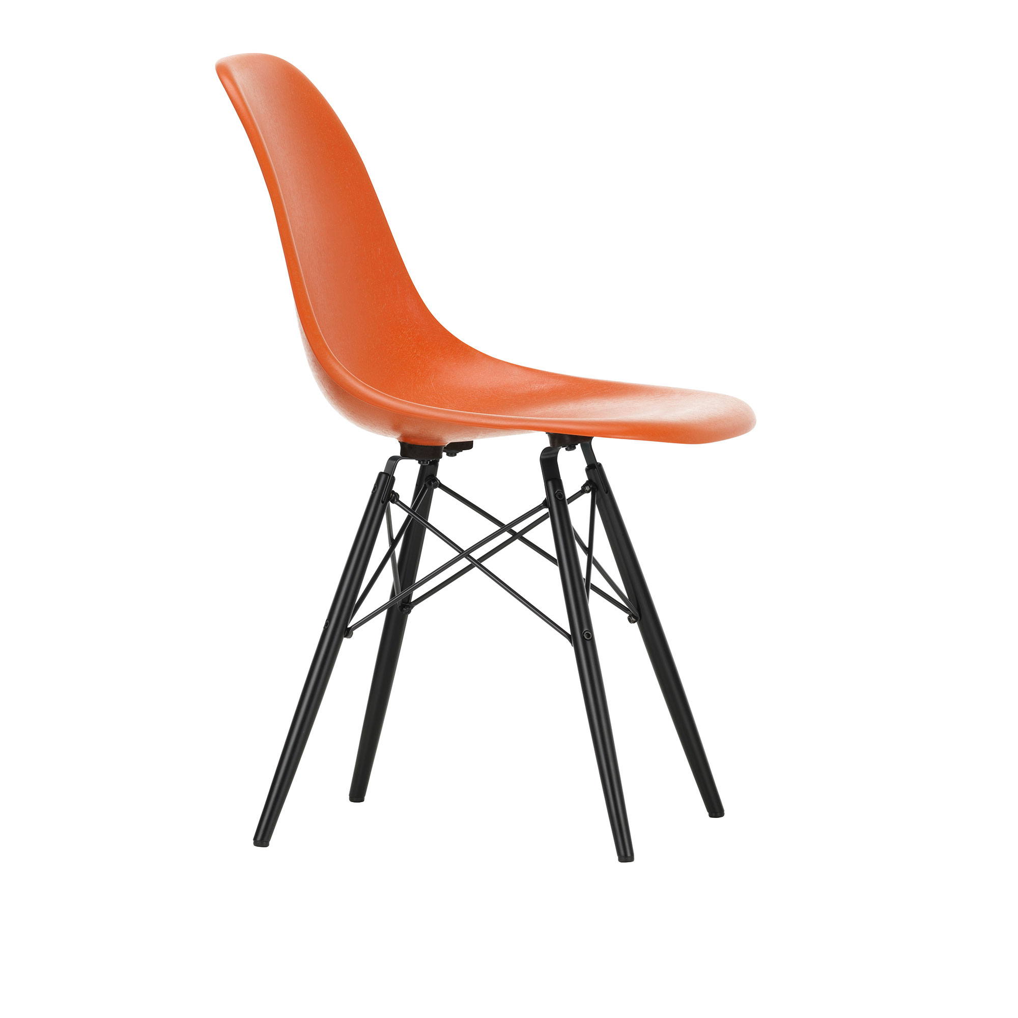 Vitra - Eames Fiberglass Chair DSW - 03 Red Orange - Black Maple - Matstolar - Charles & Ray Eames - Orange,Röd - Metall/Trä/Syntetiskt