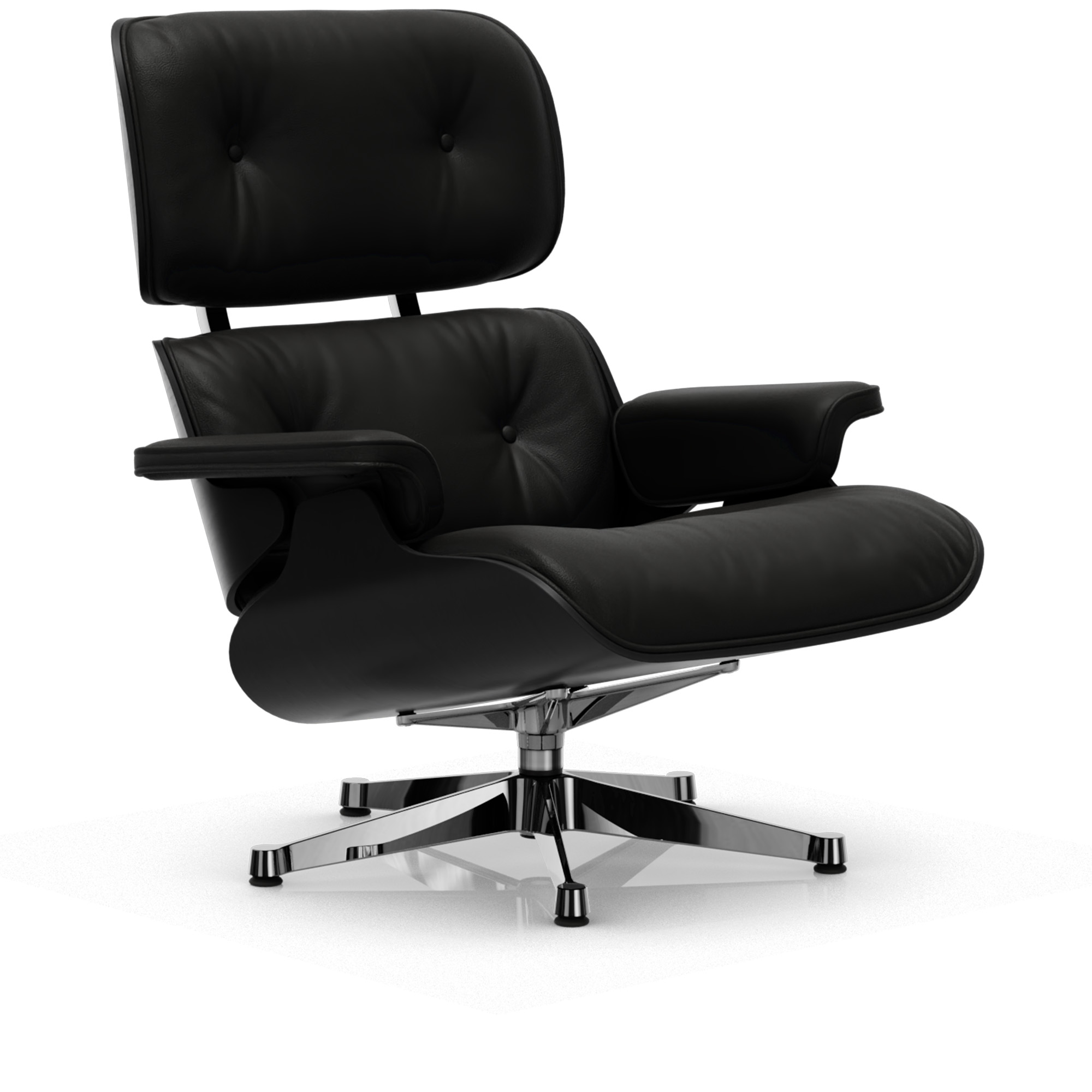 Vitra - Eames Lounge Chair Black Chestnut Leather Premium Nero 66 Polished Aluminium - Fåtöljer - Charles & Ray Eames - Läder/Metall/Trä
