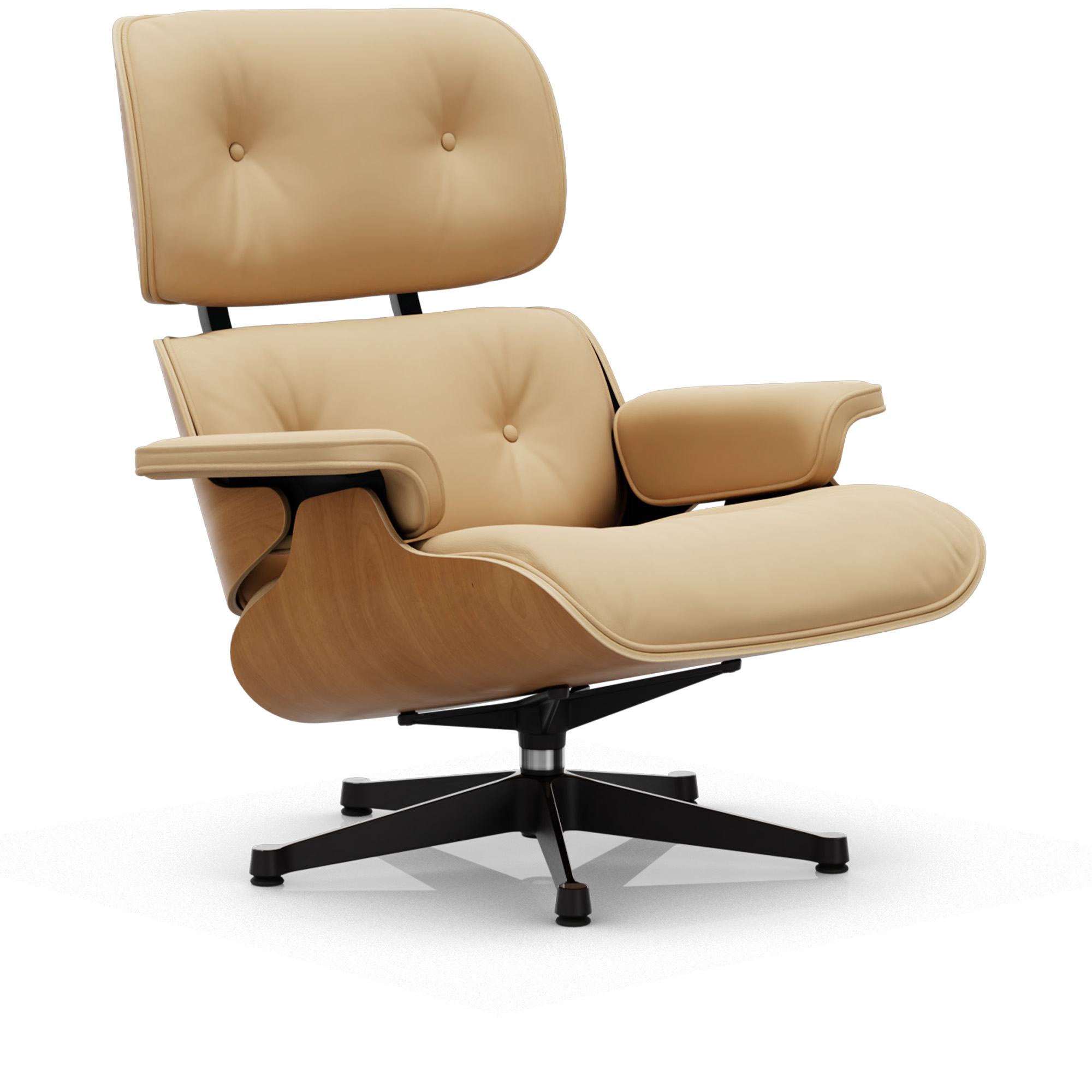 Vitra - Eames Lounge Chair Cherry Leather Premium Cashew 63 Polished Aluminium/Deep Black - Fåtöljer - Charles & Ray Eames - Läder/Metall/Trä