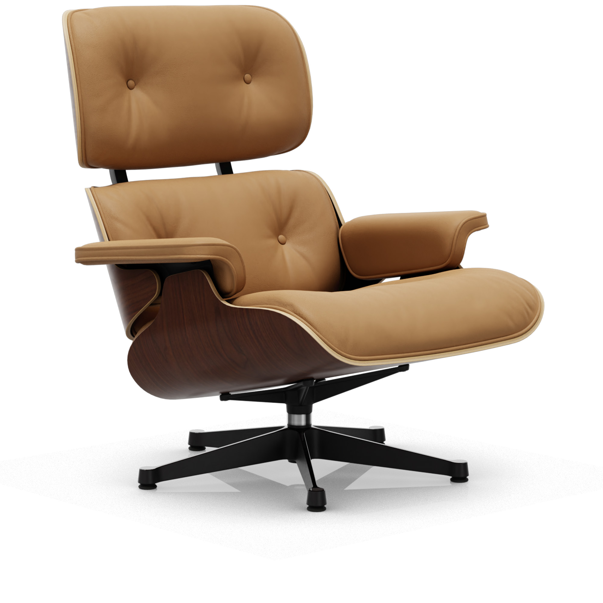 Vitra - Eames Lounge Chair Dark Walnut Leather Natural Caramel 01 Polished Aluminium/Deep Black - Fåtöljer - Charles & Ray Eames - Läder/Metall/Trä