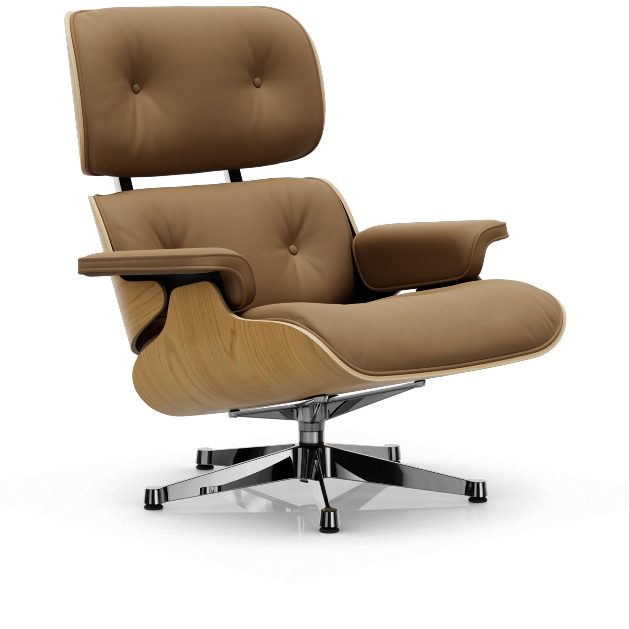Vitra - Eames Lounge Chair Natural Chestnut Leather Premium Camel 75 Polished Aluminium - Fåtöljer - Charles & Ray Eames - Läder/Metall/Trä